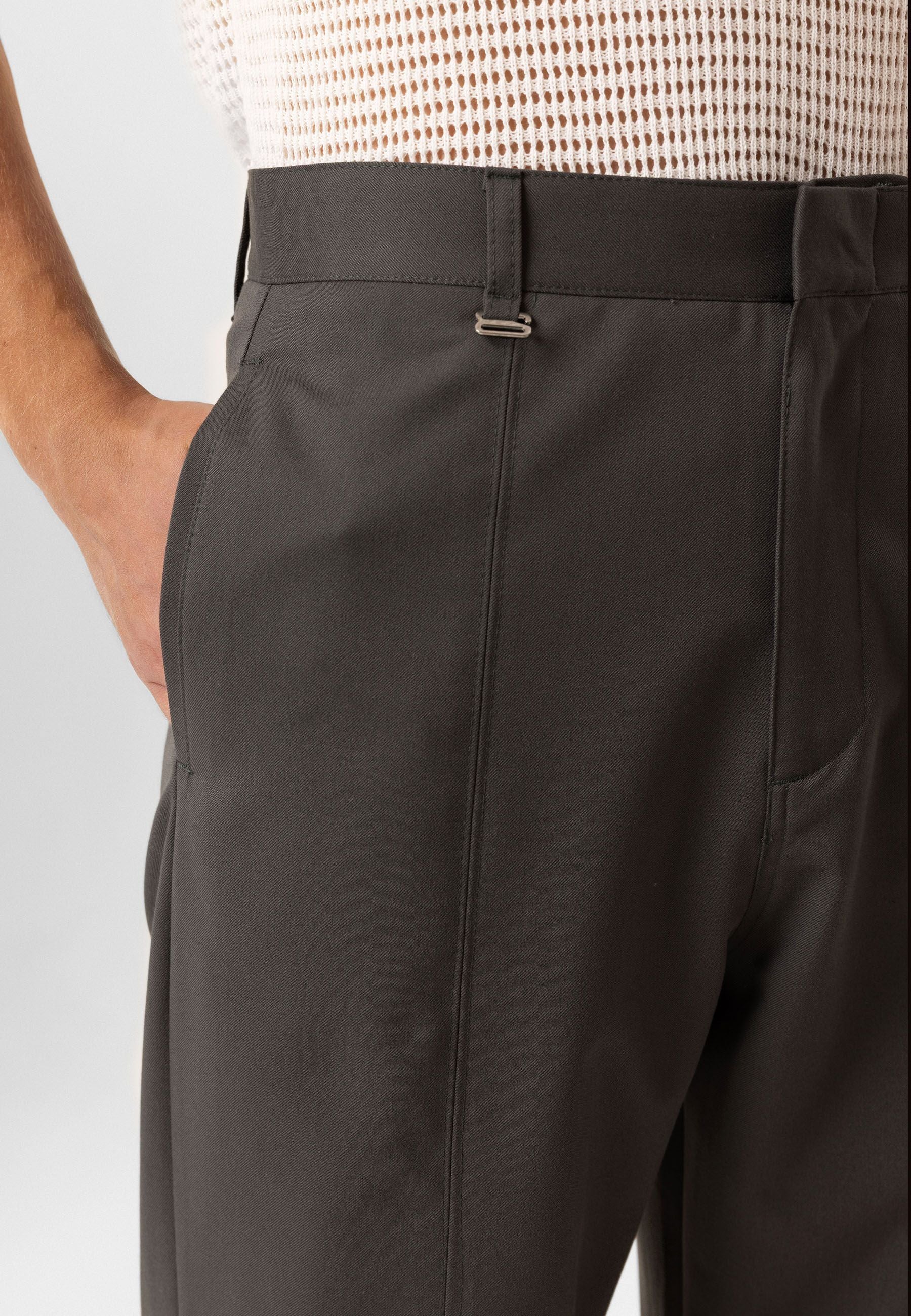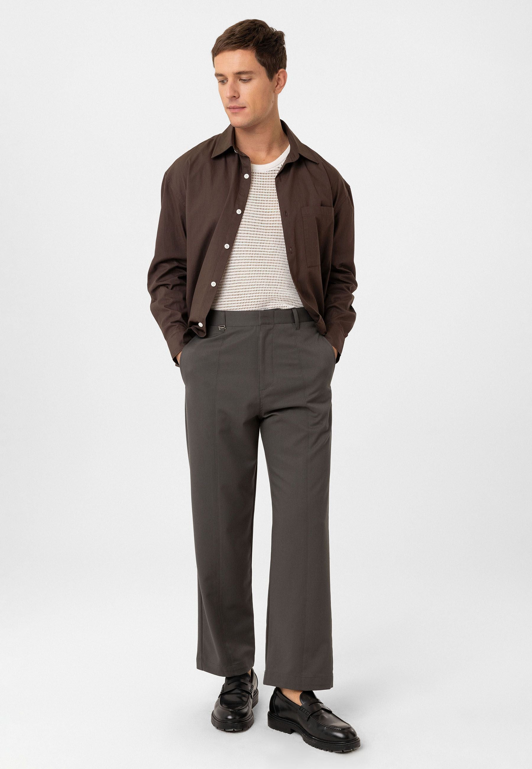 High Waist, Relaxed Fit Casual Trousers. Material 64% Polyester 33% Viscose 3% Elastane. Do not tumble dry, machine wash at 30°C. Our Model is 185 cm tall and is wearing size M