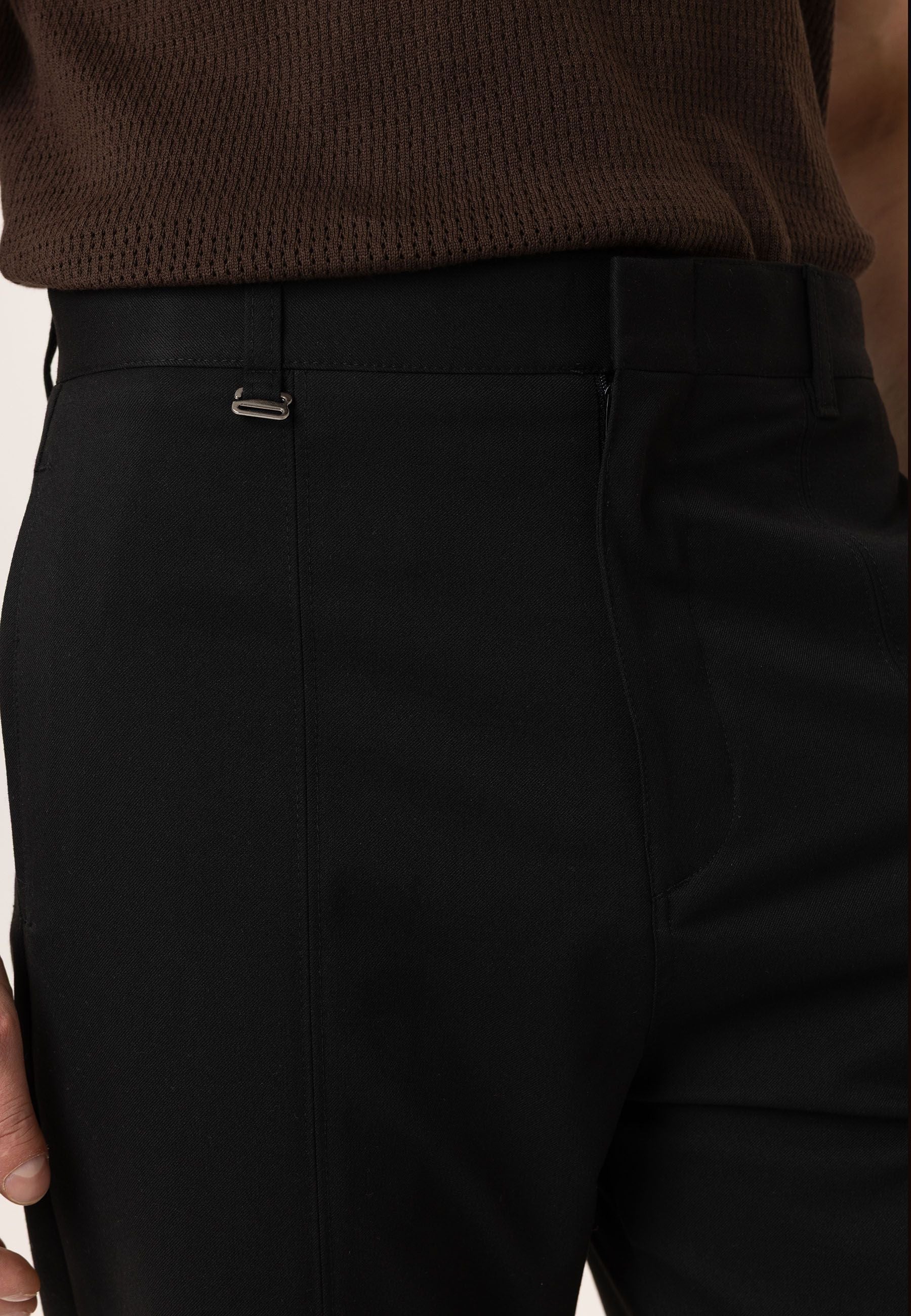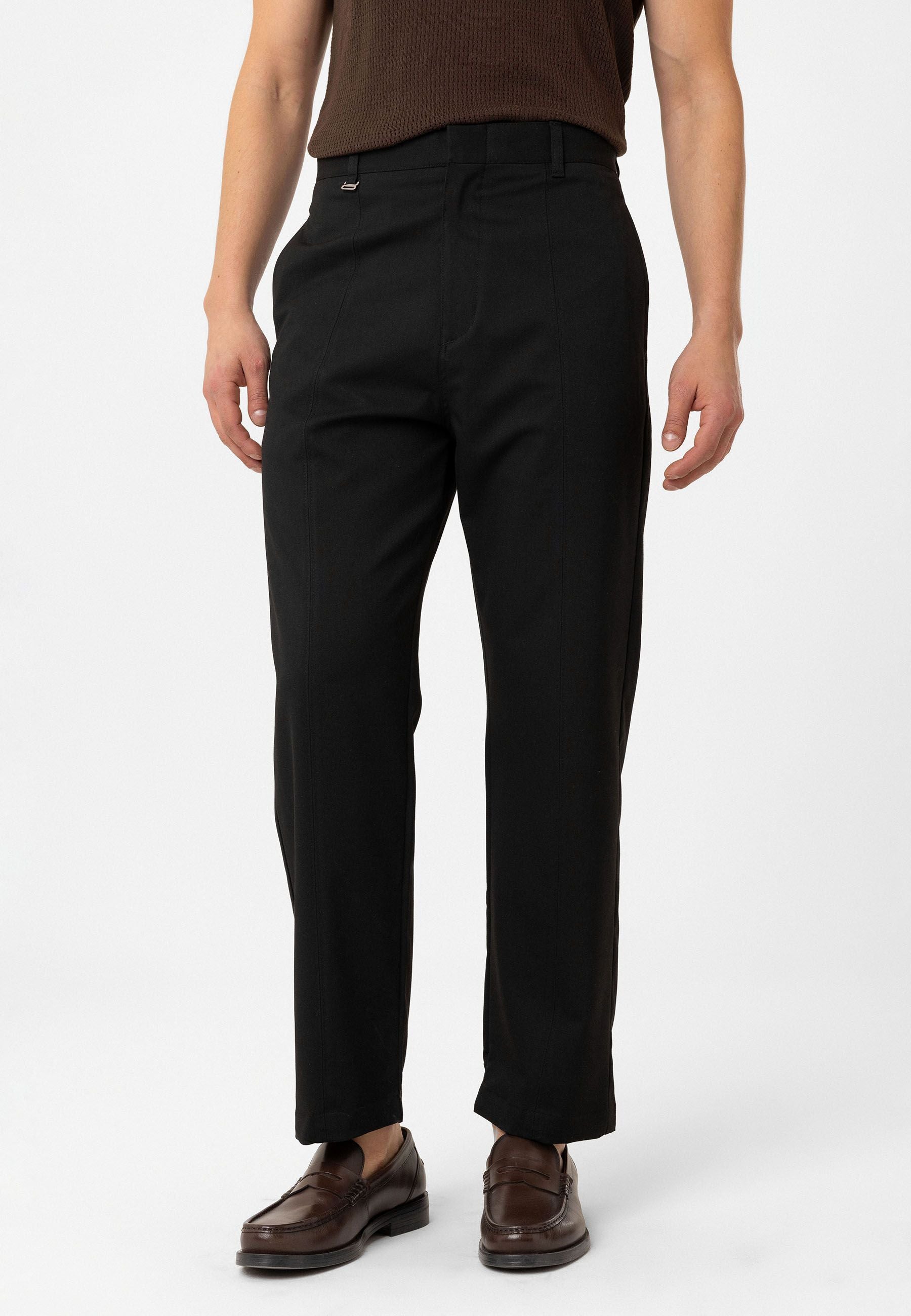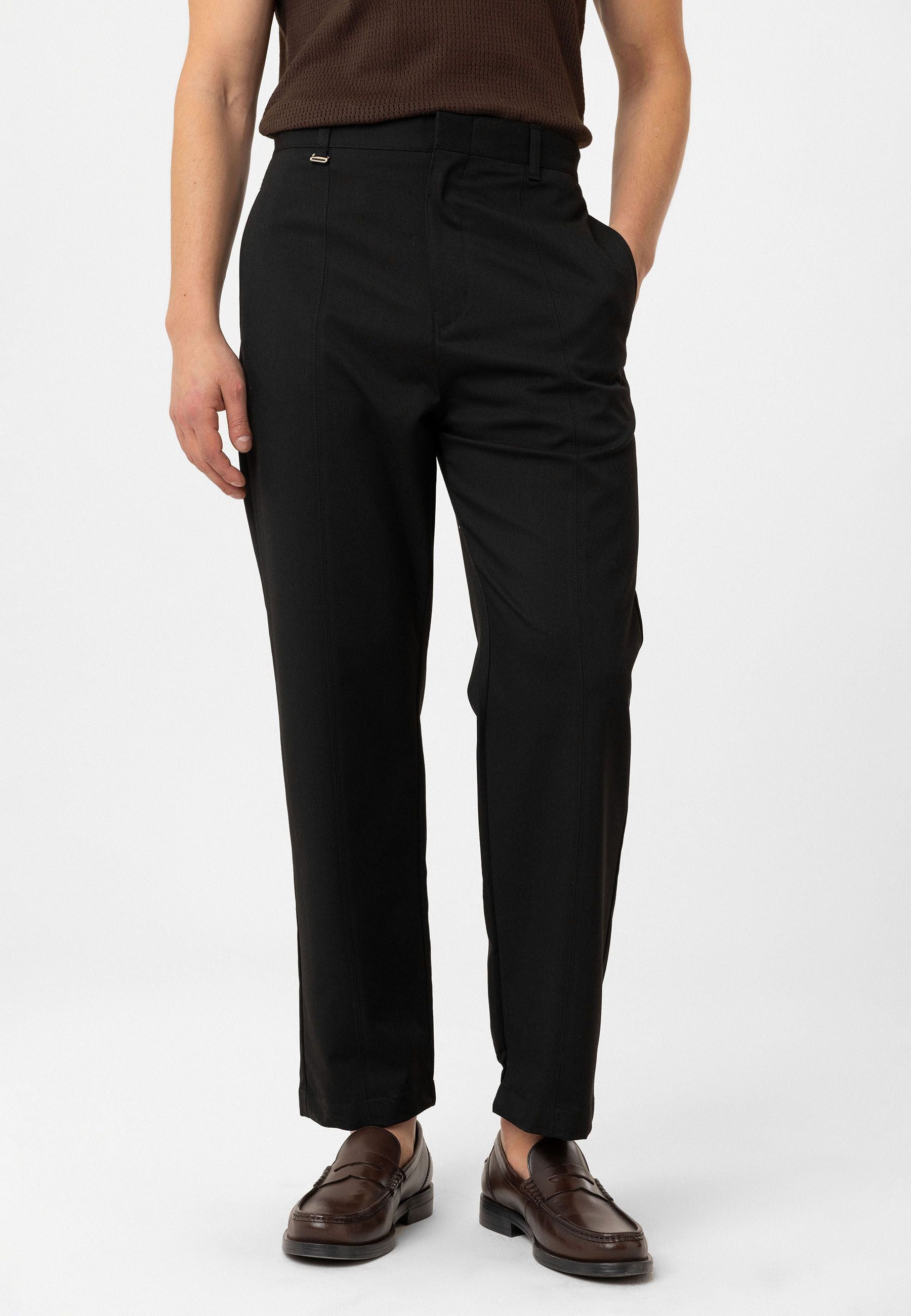 High Waist, Relaxed Fit Casual Trousers. Material 64% Polyester 33% Viscose 3% Elastane. Do not tumble dry, machine wash at 30°C. Our Model is 185 cm tall and is wearing size M