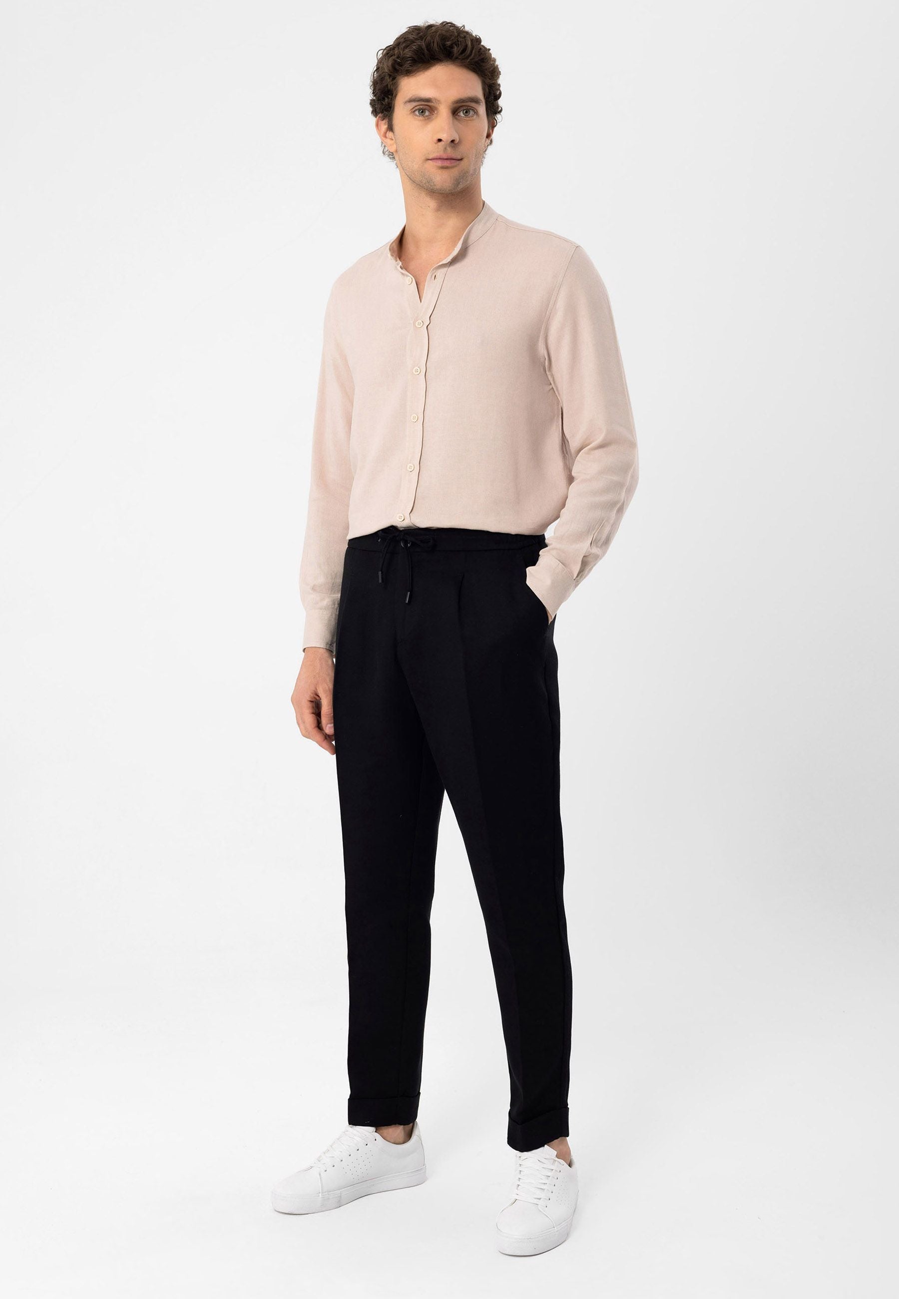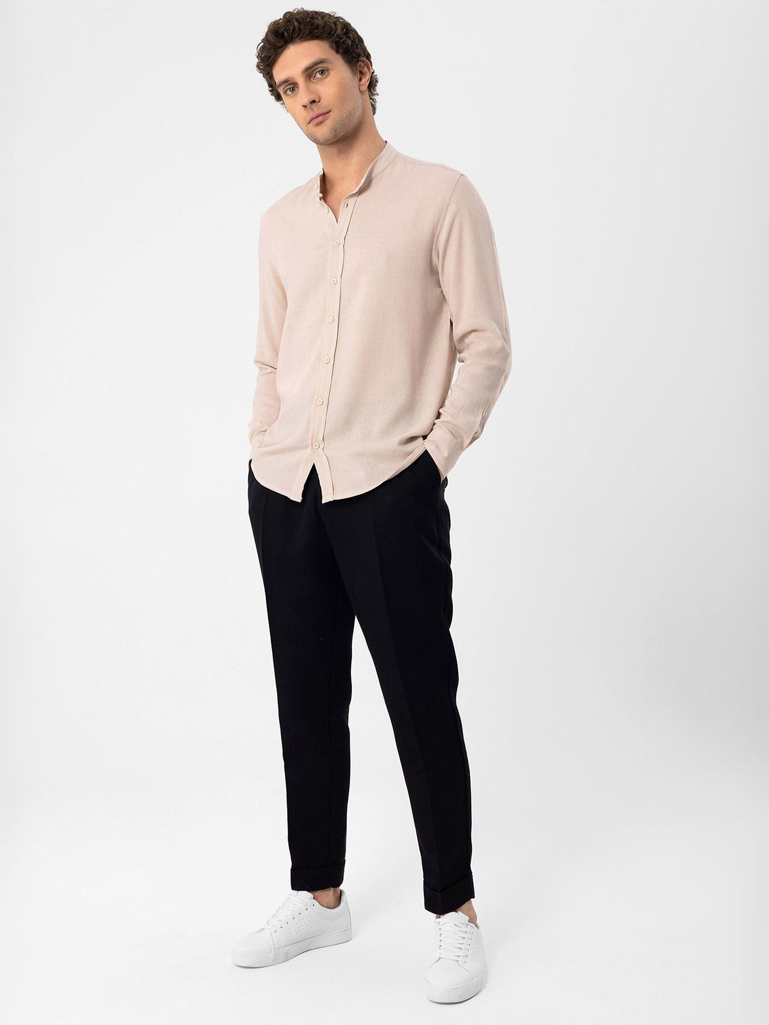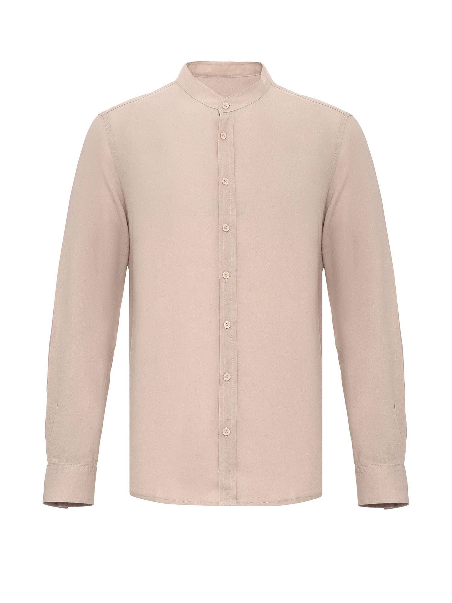 Mandarin Collar Long Sleeve Shirt. 80% Viscose 20% Linen. Machine wash at 30°C