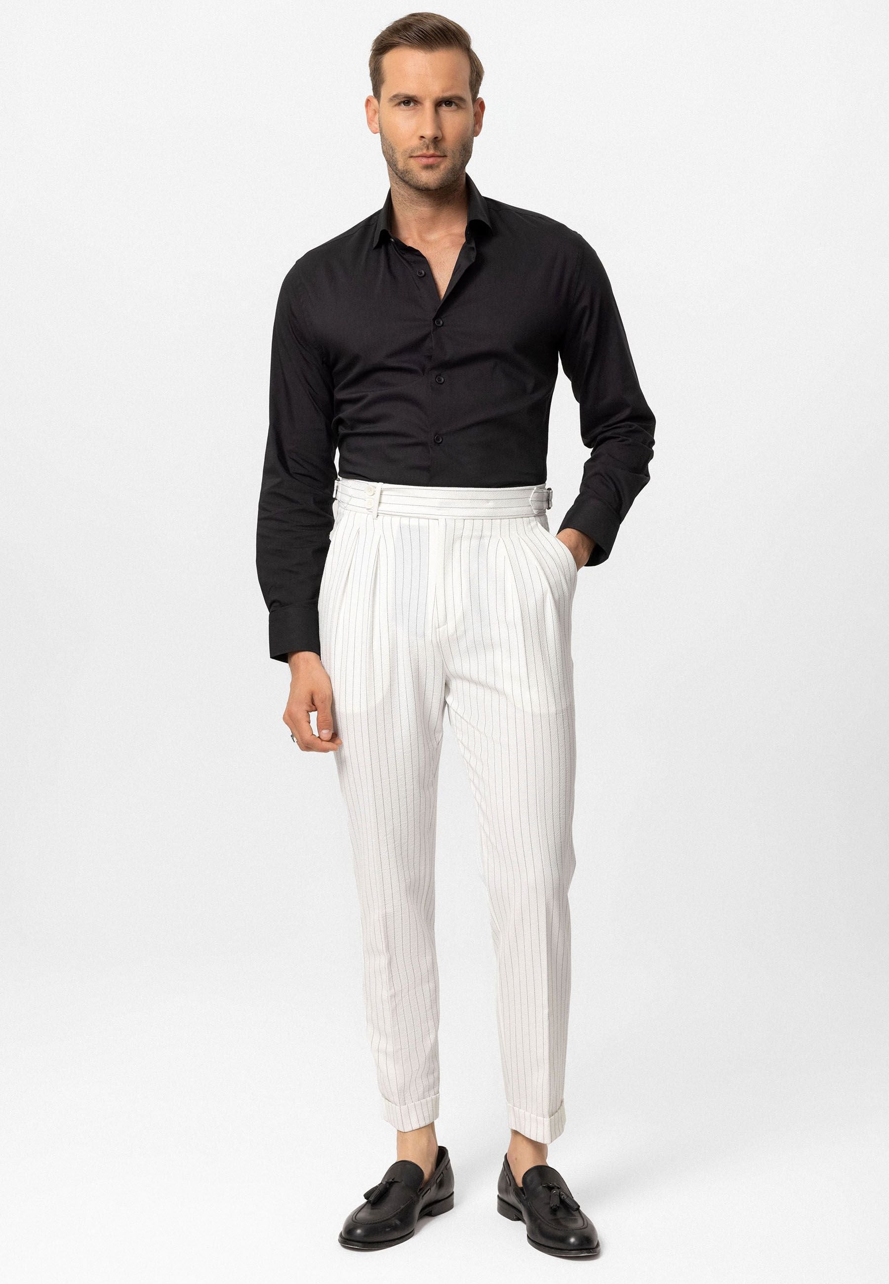 High waist - Regular Fit. Material 65% Polyester 32% Viscose 3% Elastane. Do not tumble dry, machine wash at 30°C. Our model is 186 cm tall and wearing size 31.