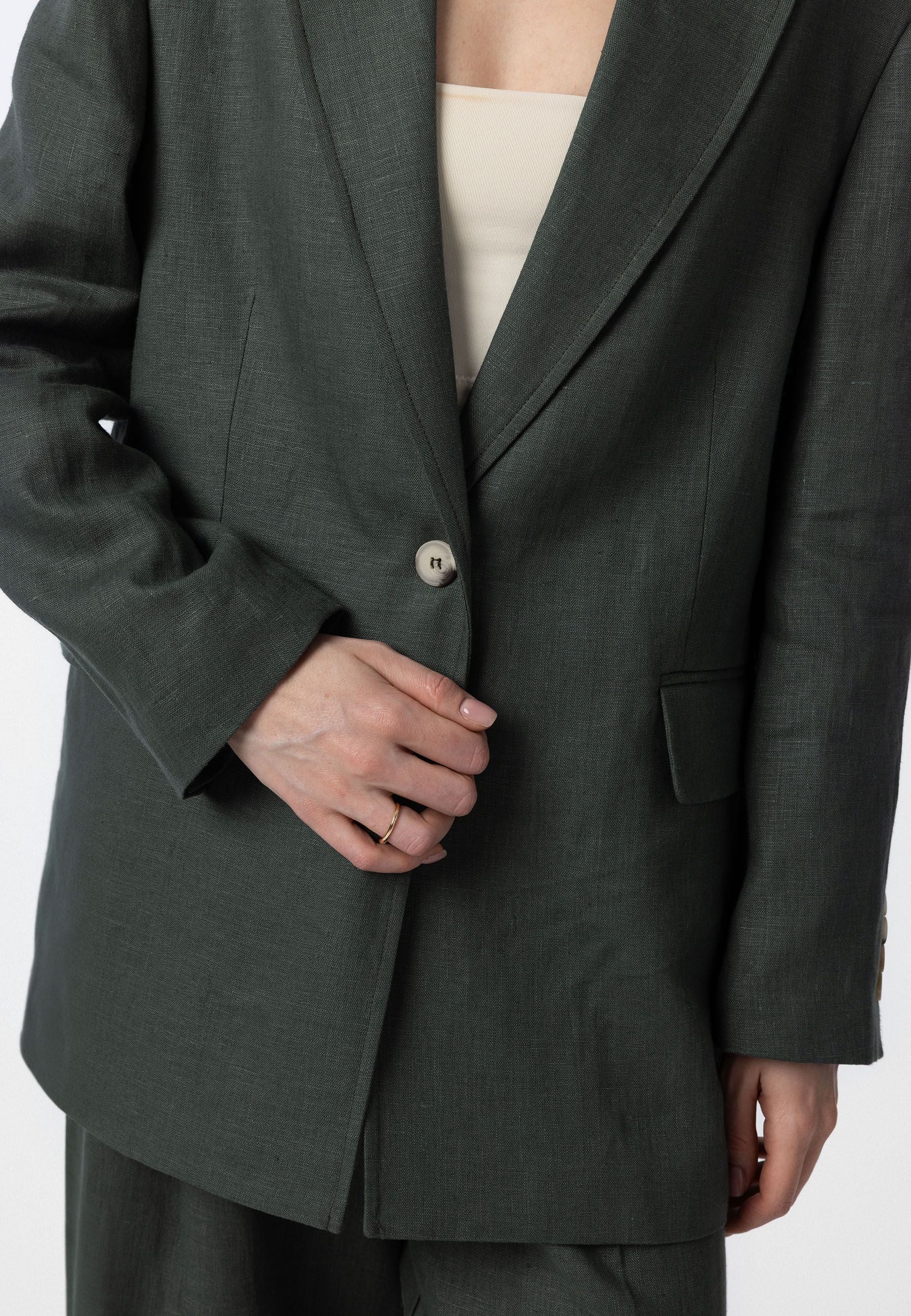 Relax Fit, Inseam Pocket Detailed Linen Jacket. Material 100% Linen. Do not tumble dry, Dry clean only, do not wash, Do not iron, do not bleach. Our Model is 177 cm tall and is wearing size 36