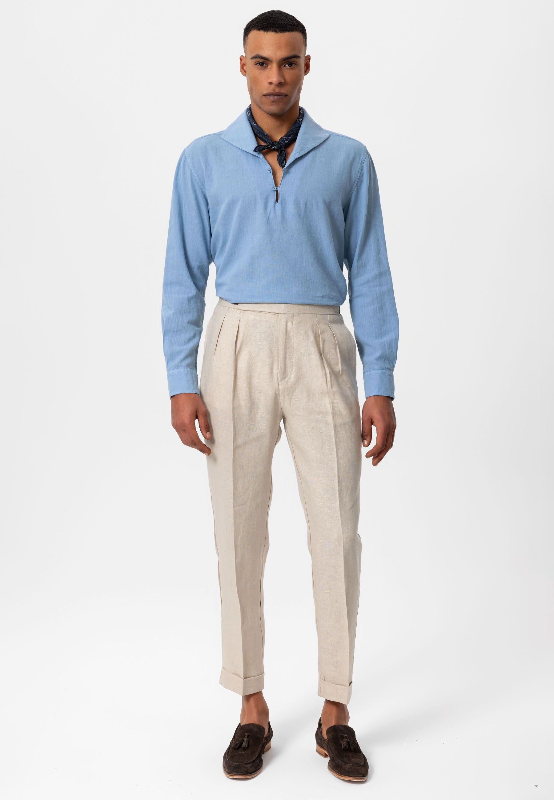 Material %55 Linen %45 Cotton. Machine wash at 30°C. Our model is 186 cm tall and is wearing size M