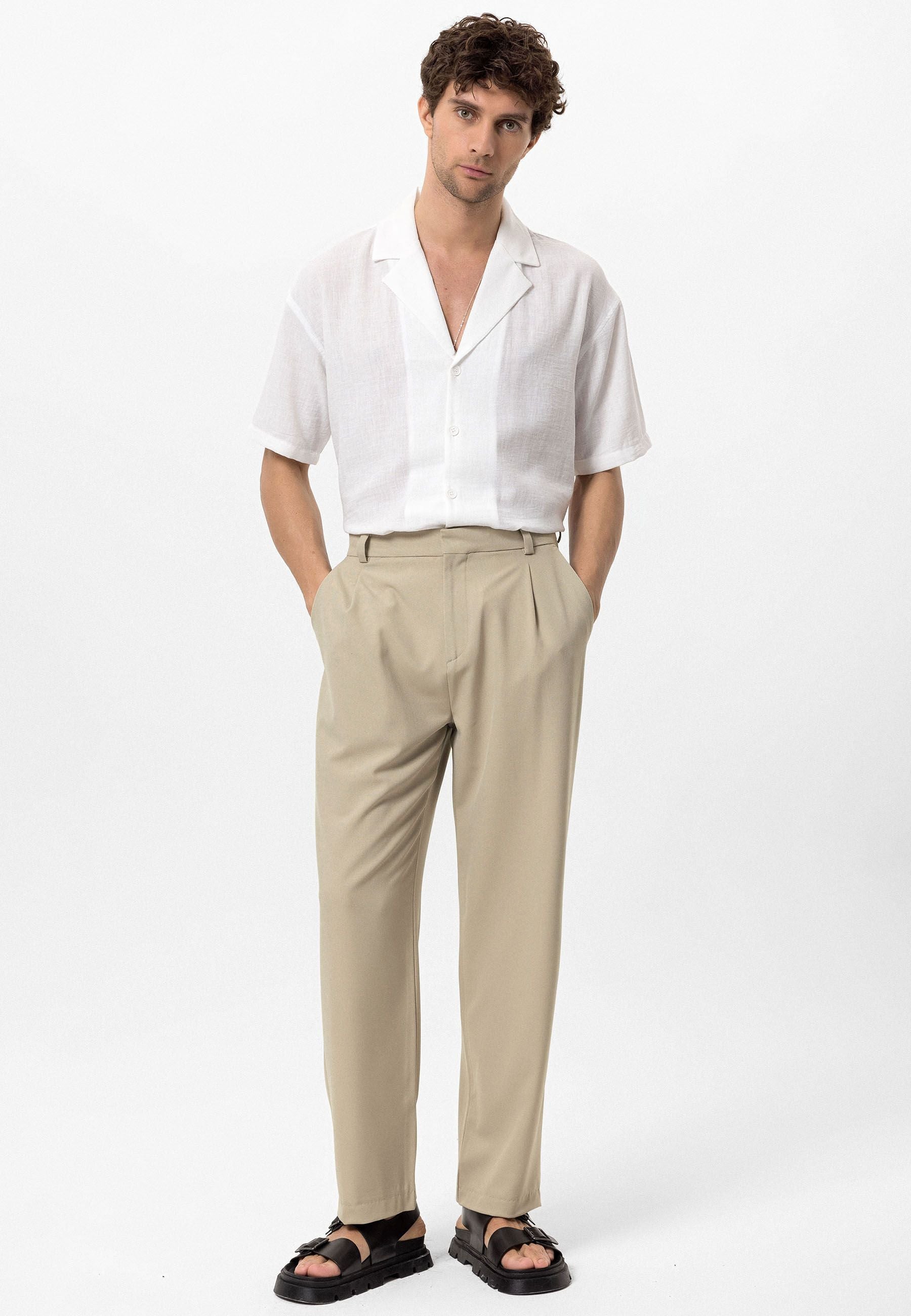 Relax Fit Trousers. Material 62% Polyester 34% Viscose 4% Elastane. Do not tumble dry, machine wash at 30°C. Our model is 189 cm tall and is wearing size L,