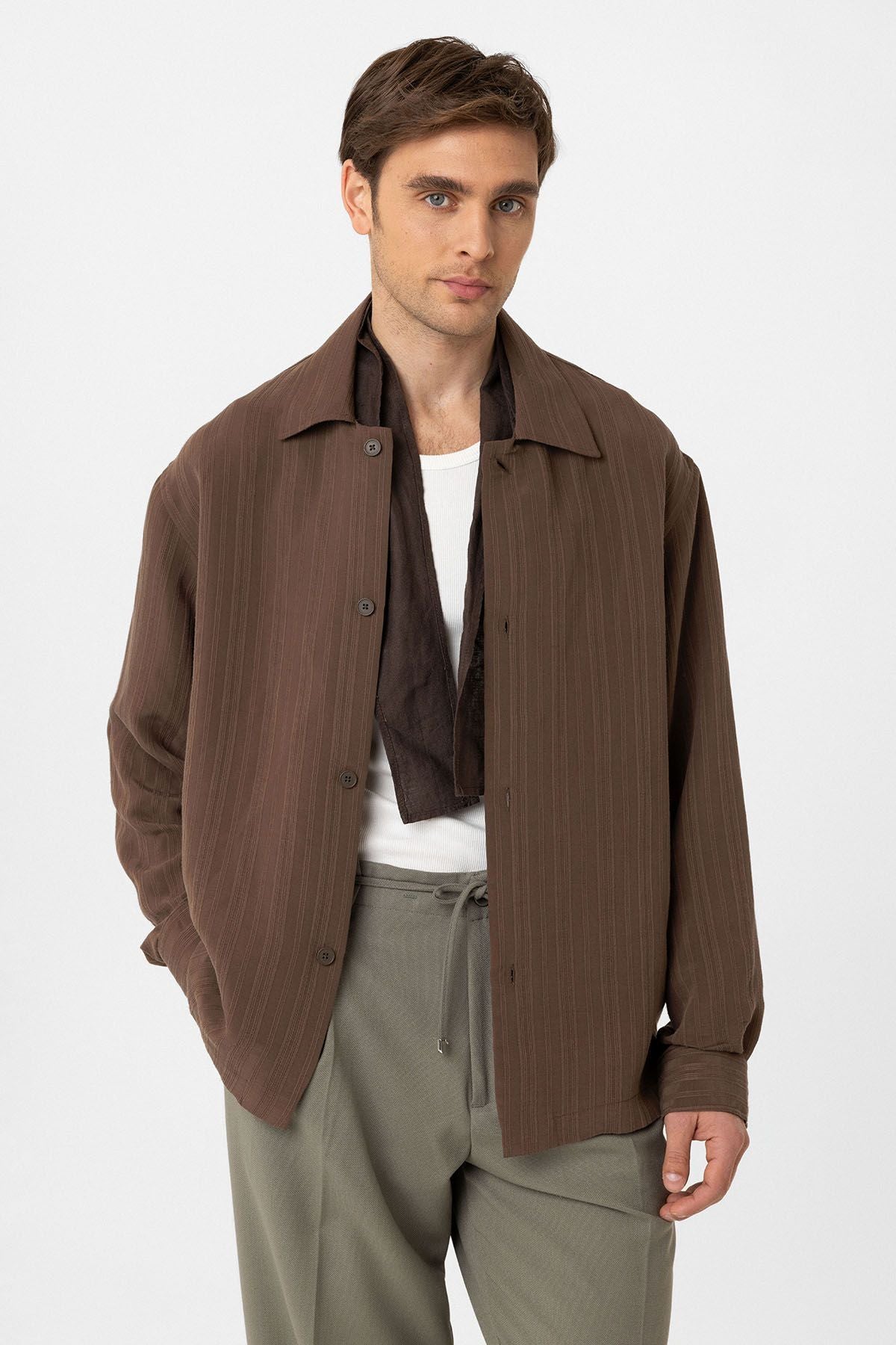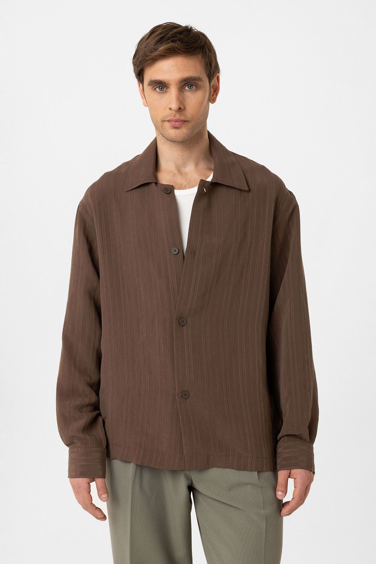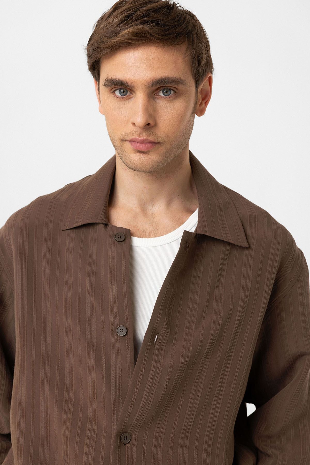 Striped, Long Sleeve, Kent Collar, Oversize Shirt. Material 85% Viscose 15% Nylon. Machine wash at 30°C. Our Model is 185 cm tall and is wearing size M,