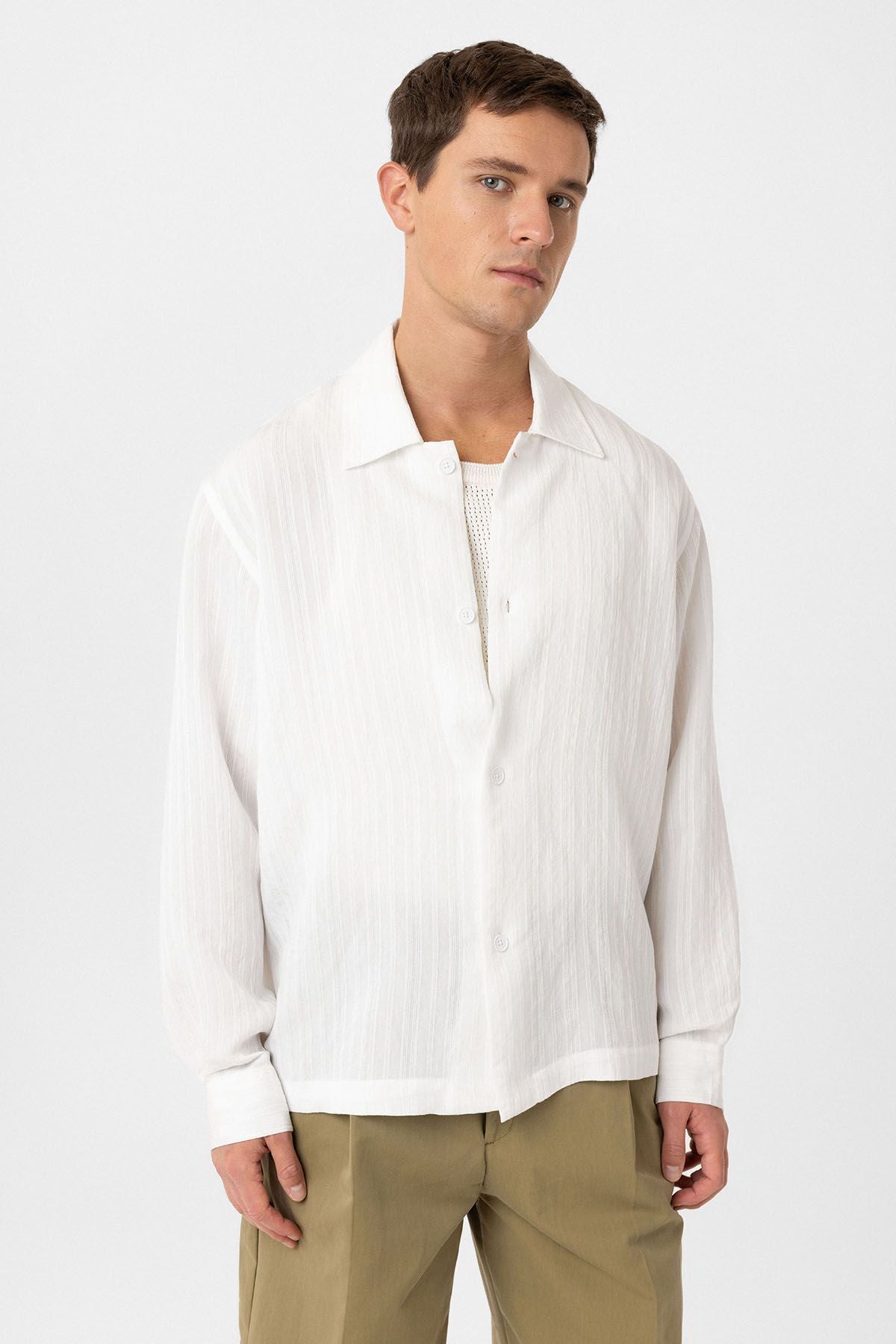 Striped, Long Sleeve, Kent Collar, Oversize Shirt. Material 85% Viscose 15% Nylon. Machine wash at 30°C. Our Model is 185 cm tall and is wearing size M,