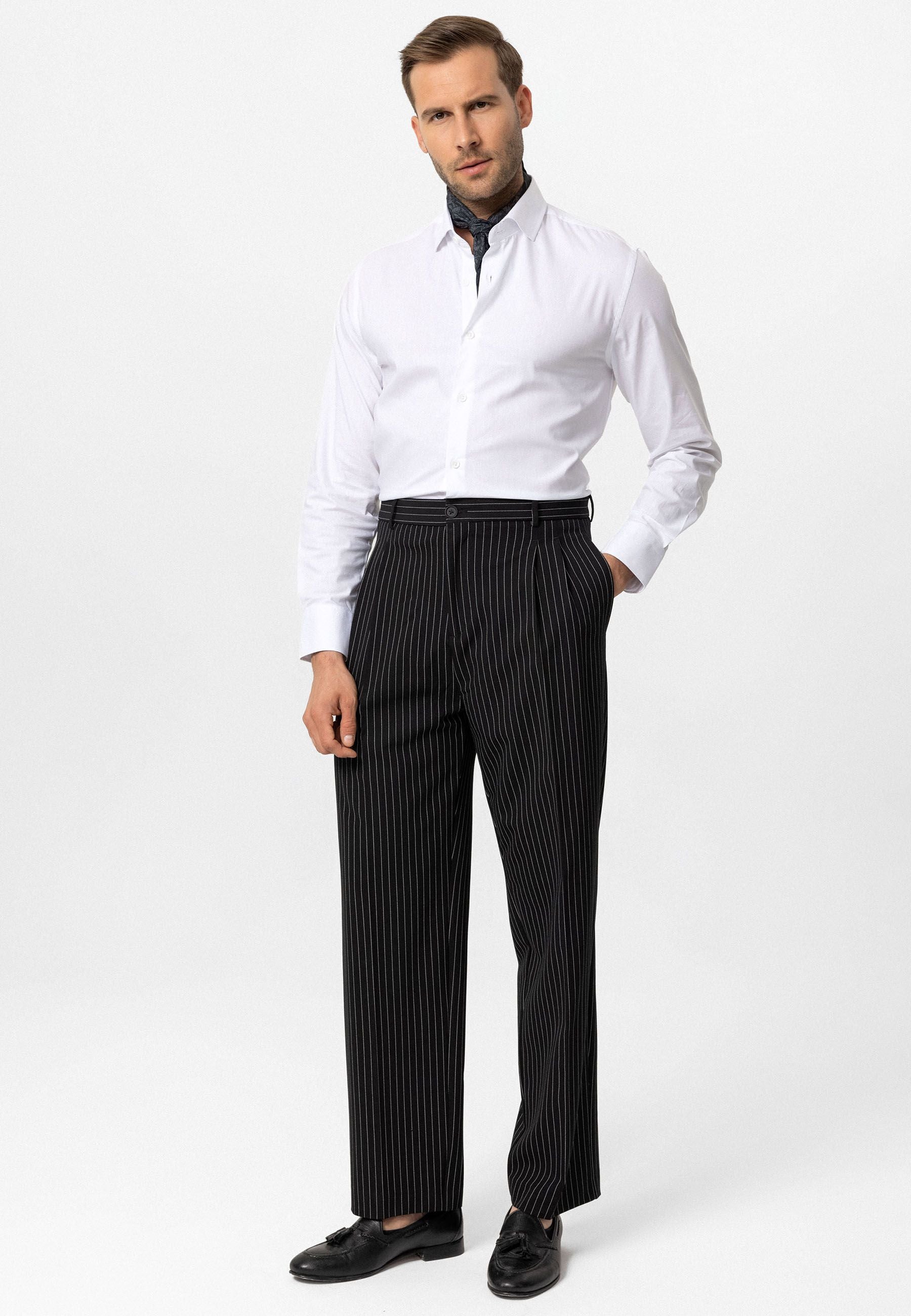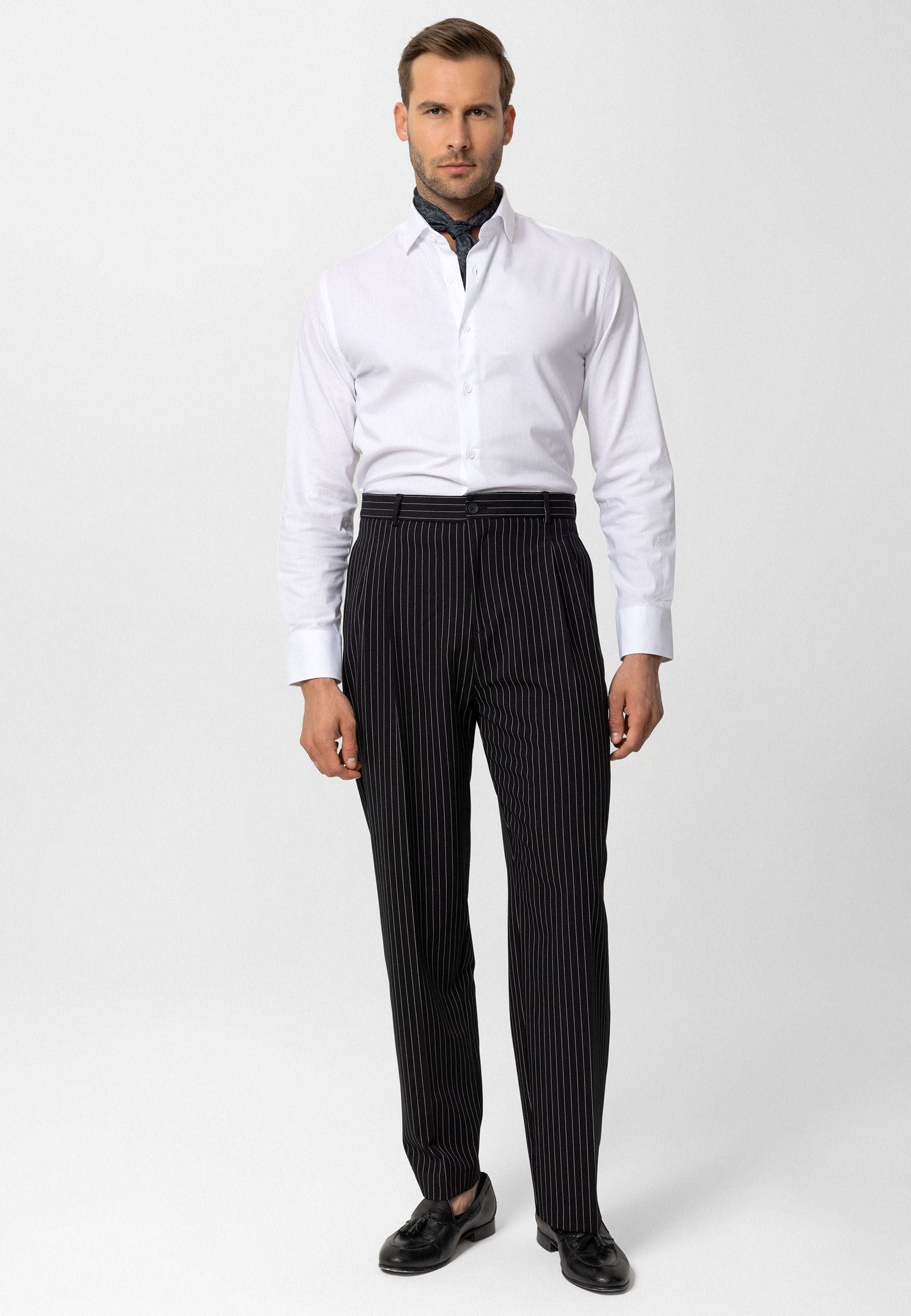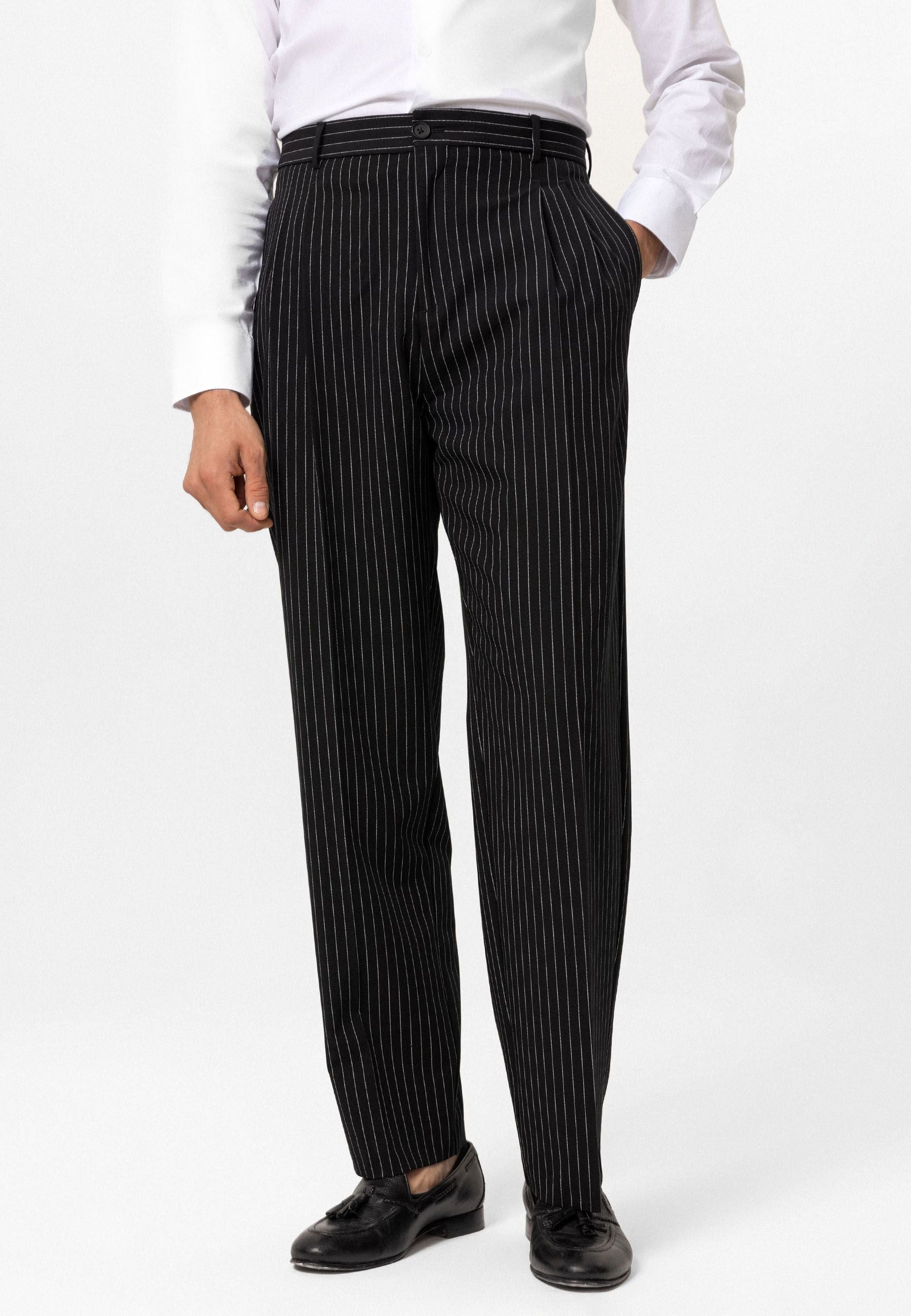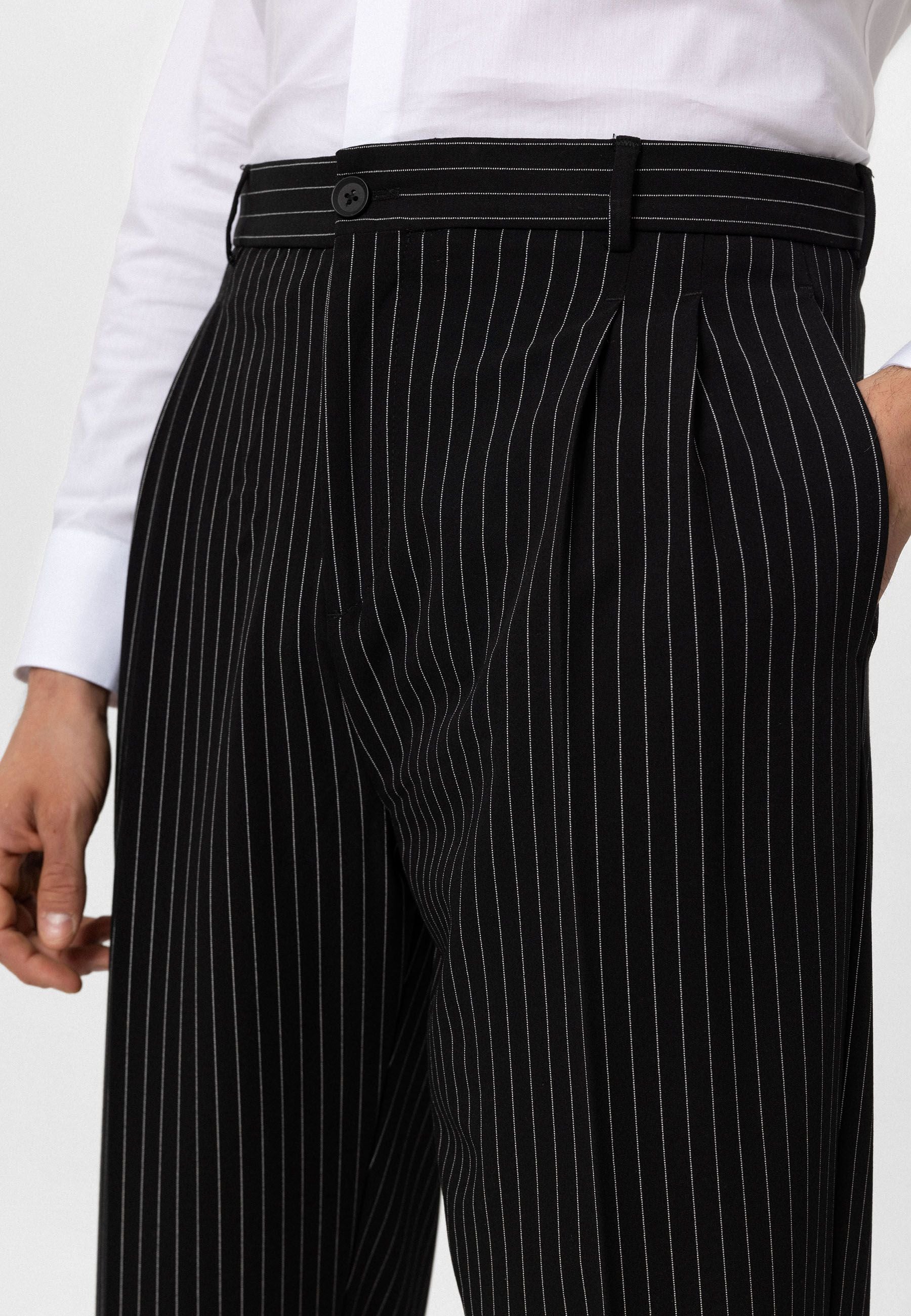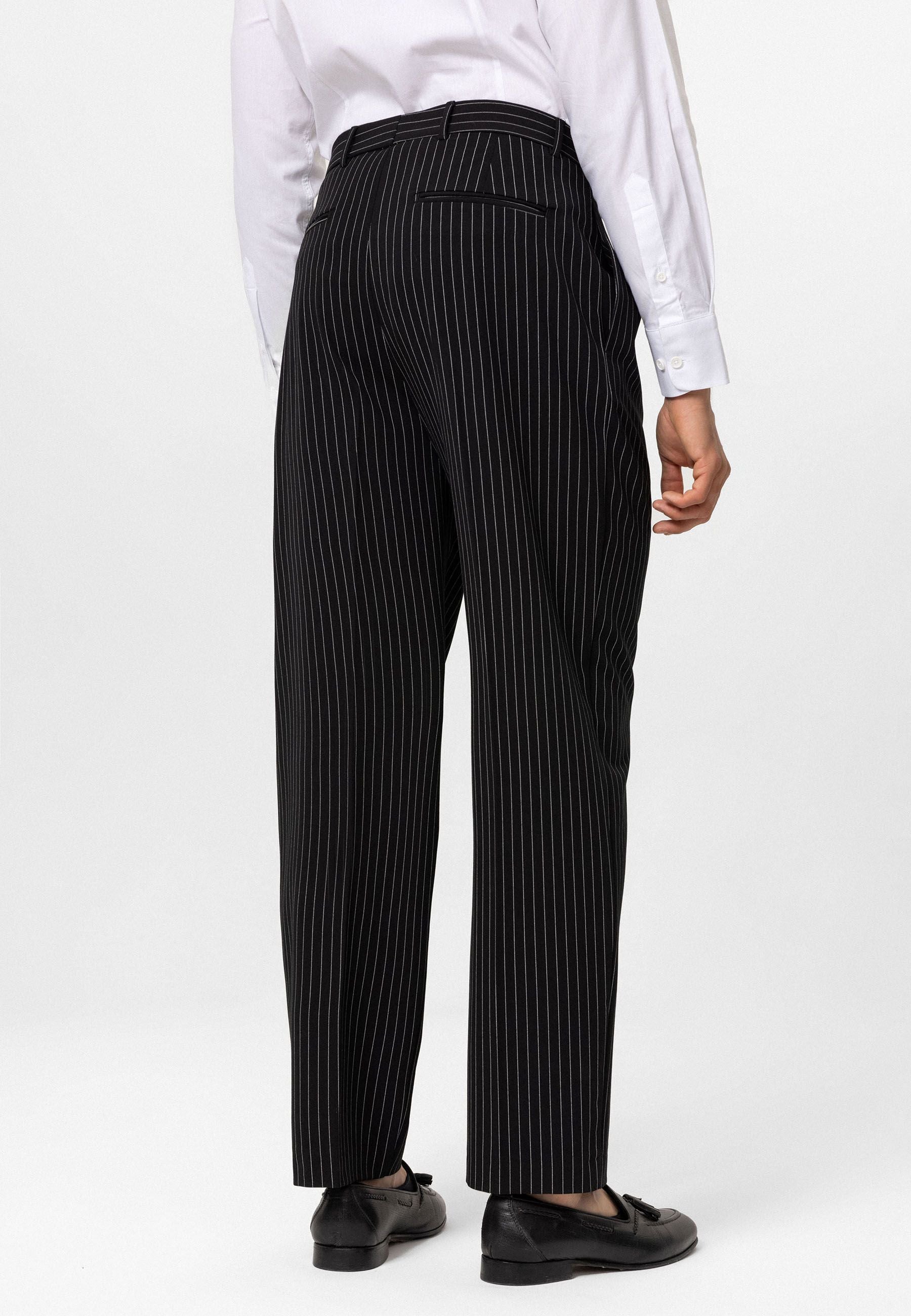 Striped - Pleated - Oversize - Normal Waist. Material 62% Viscose 33% Polyester 5% Elastane.  Do not tumble dry, machine wash at 30°C. Our model is 189 cm tall and is wearing size M