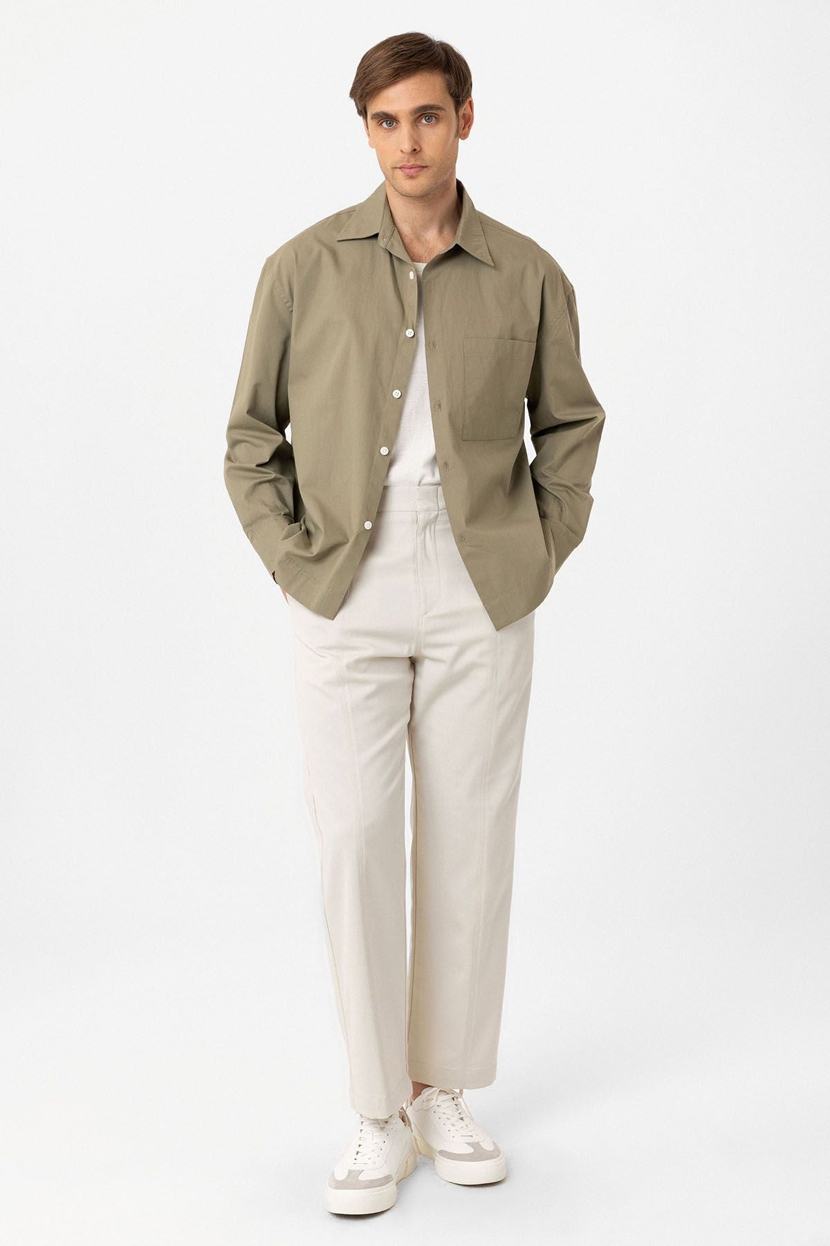 Long Sleeve, Kent Collar, Loose Fit Shirt. Material 100% Cotton. Machine wash at 30°C. Our Model is 185 cm tall and is wearing size M,