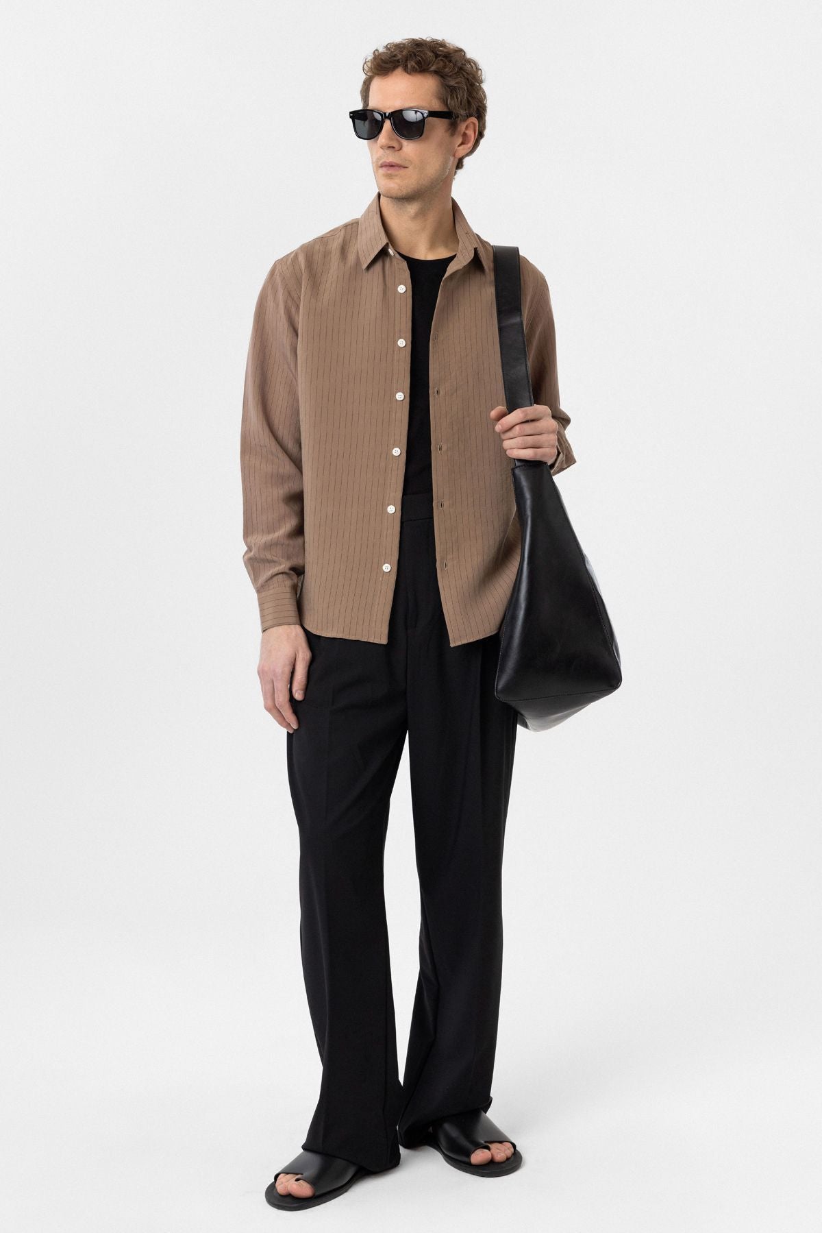Striped, Long Sleeve, Kent Collar Shirt. Material 90% Cotton 10% Polyester. Machine wash at 30°C. Our Model is 186 cm tall and is wearing size M,