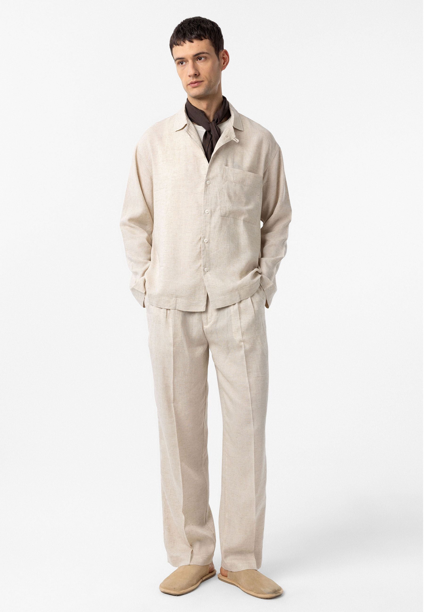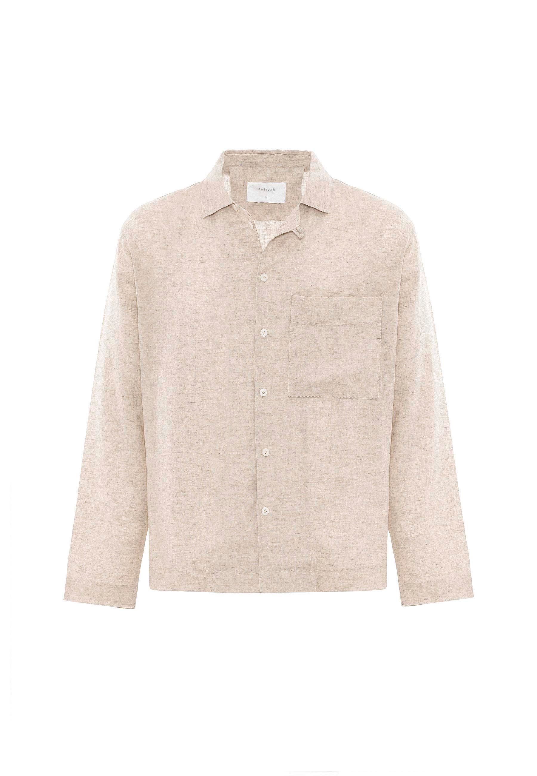 Loose fit, Lapel Collar, Chest Pocket Detailed, Long Sleeve Shirt. Material 50% Linen 50% Viscose. Do not tumble dry, machine wash at 30°C. Our Model is 189,5 cm tall and is wearing size L