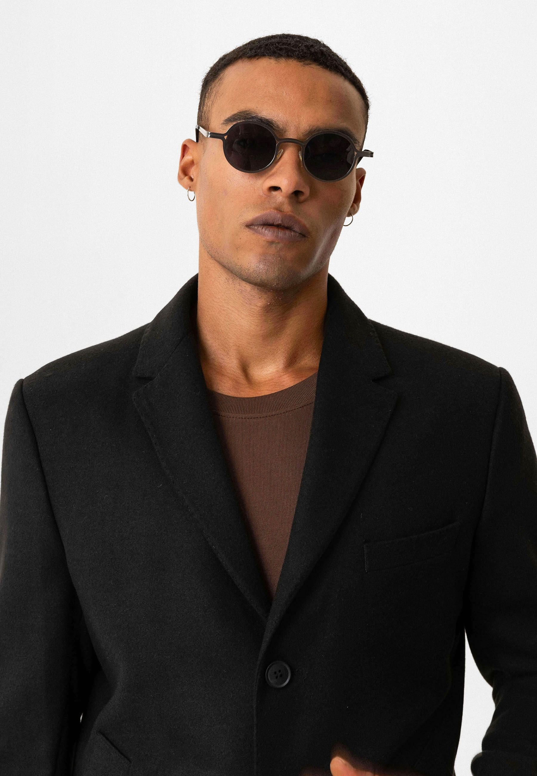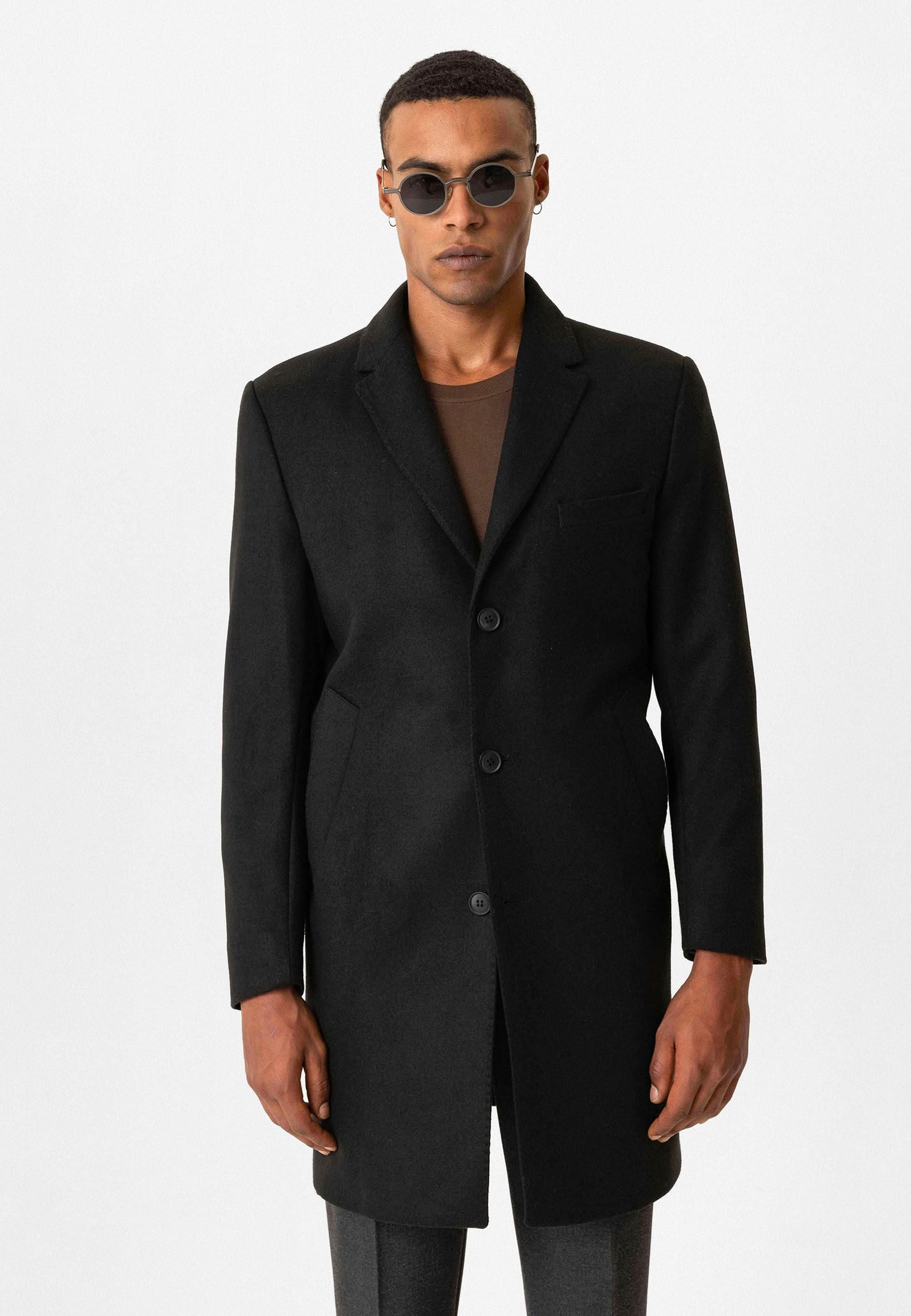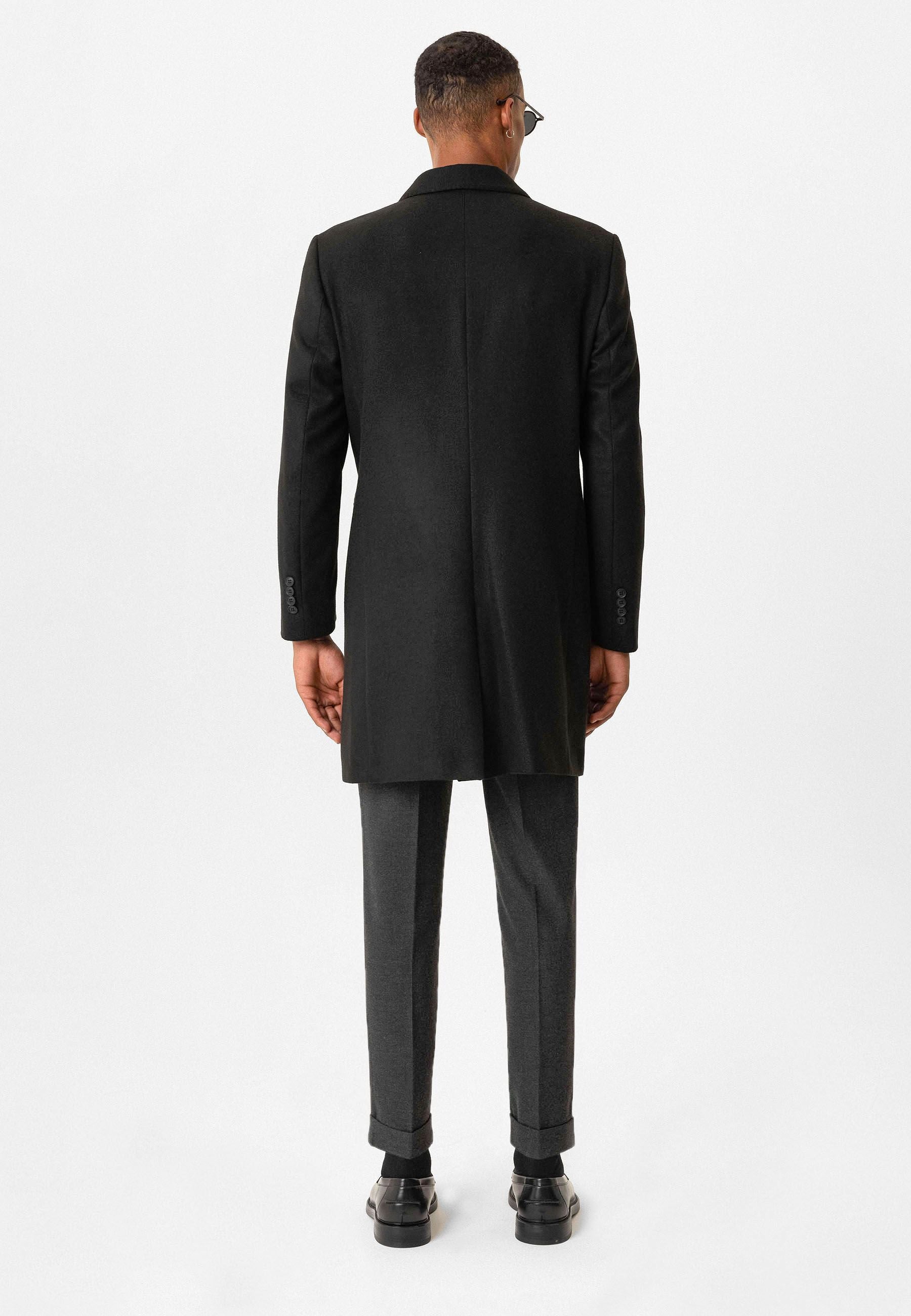 Slim Fit Coat. Material 52% Polyester 45% Viscose 3% Lycra. Do not tumble dry, Dry clean only, do not wash, Do not iron, do not bleach. Our Model is 186 cm tall and is wearing size 48