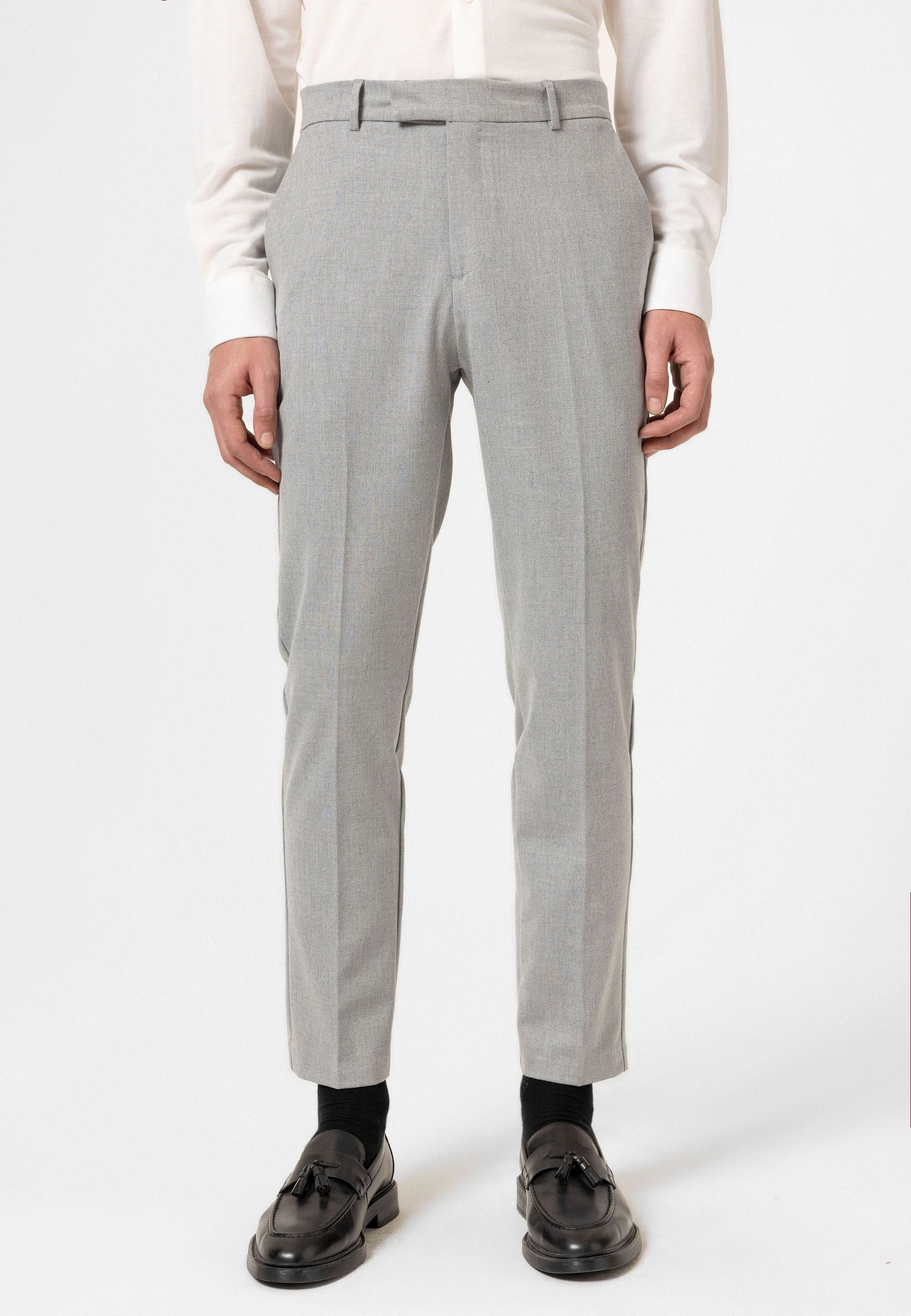 Slim Fit High Waist Trousers. Material 64% Polyester 32% Viscose 4% Elastane. Do not tumble dry, machine wash at 30°C. Our Model is 186 cm tall and is wearing size 30