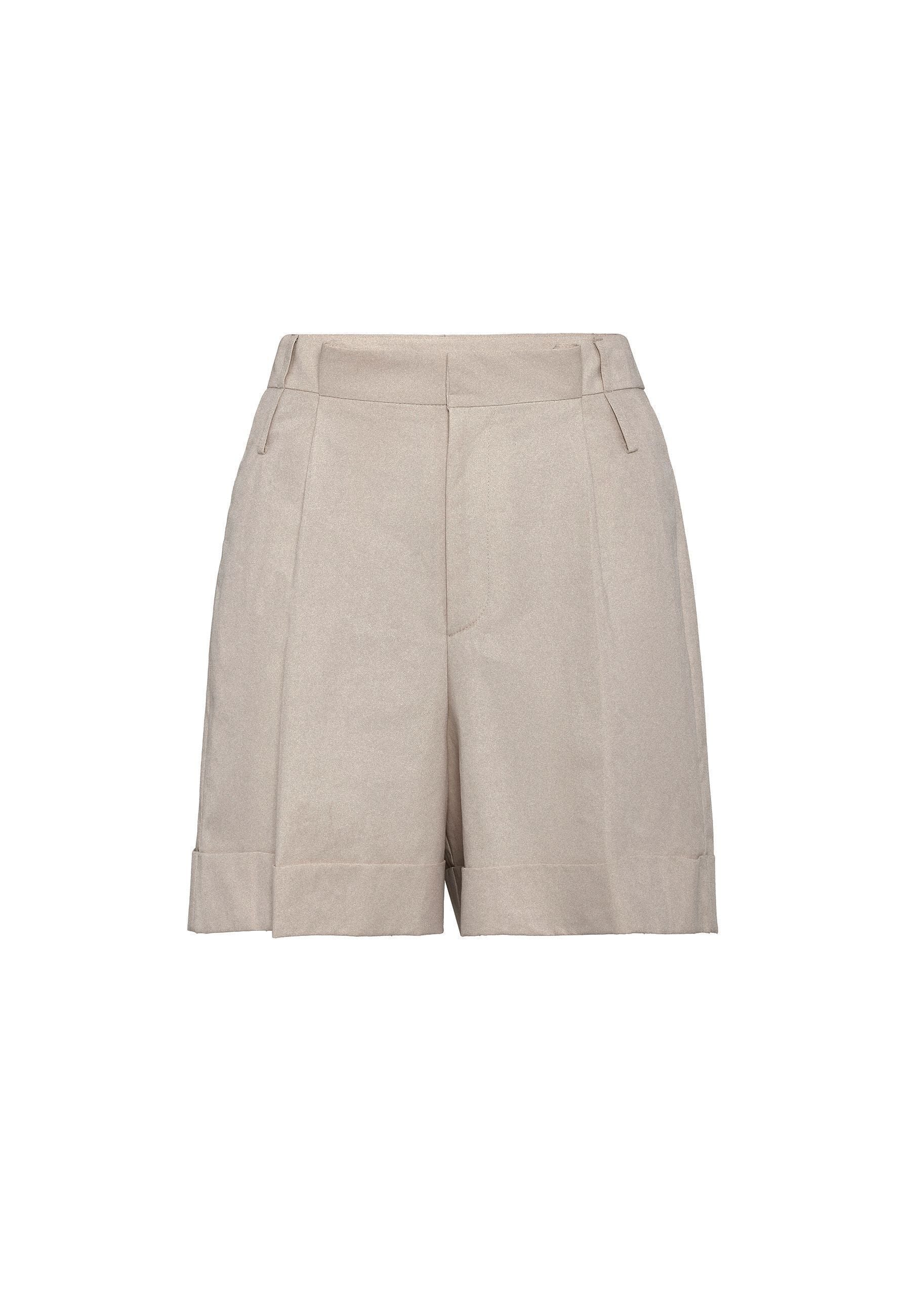 Relaxed Fit, High Waist, Pleated Bermuda Shorts. Material 50% Cotton 50% Nylon. Do not tumble dry, machine wash at 30°C. Our Model is 175 cm tall and is wearing size 36