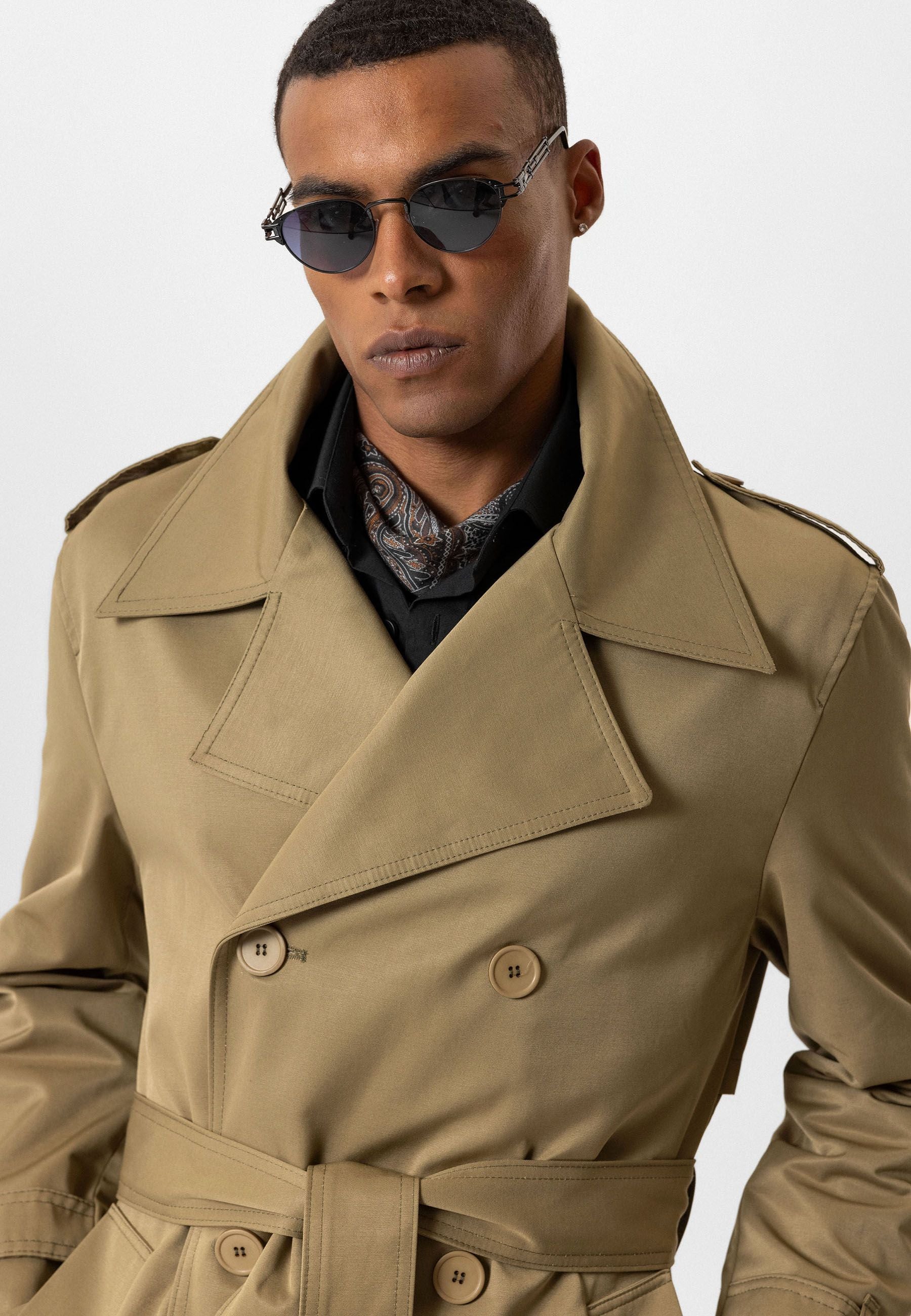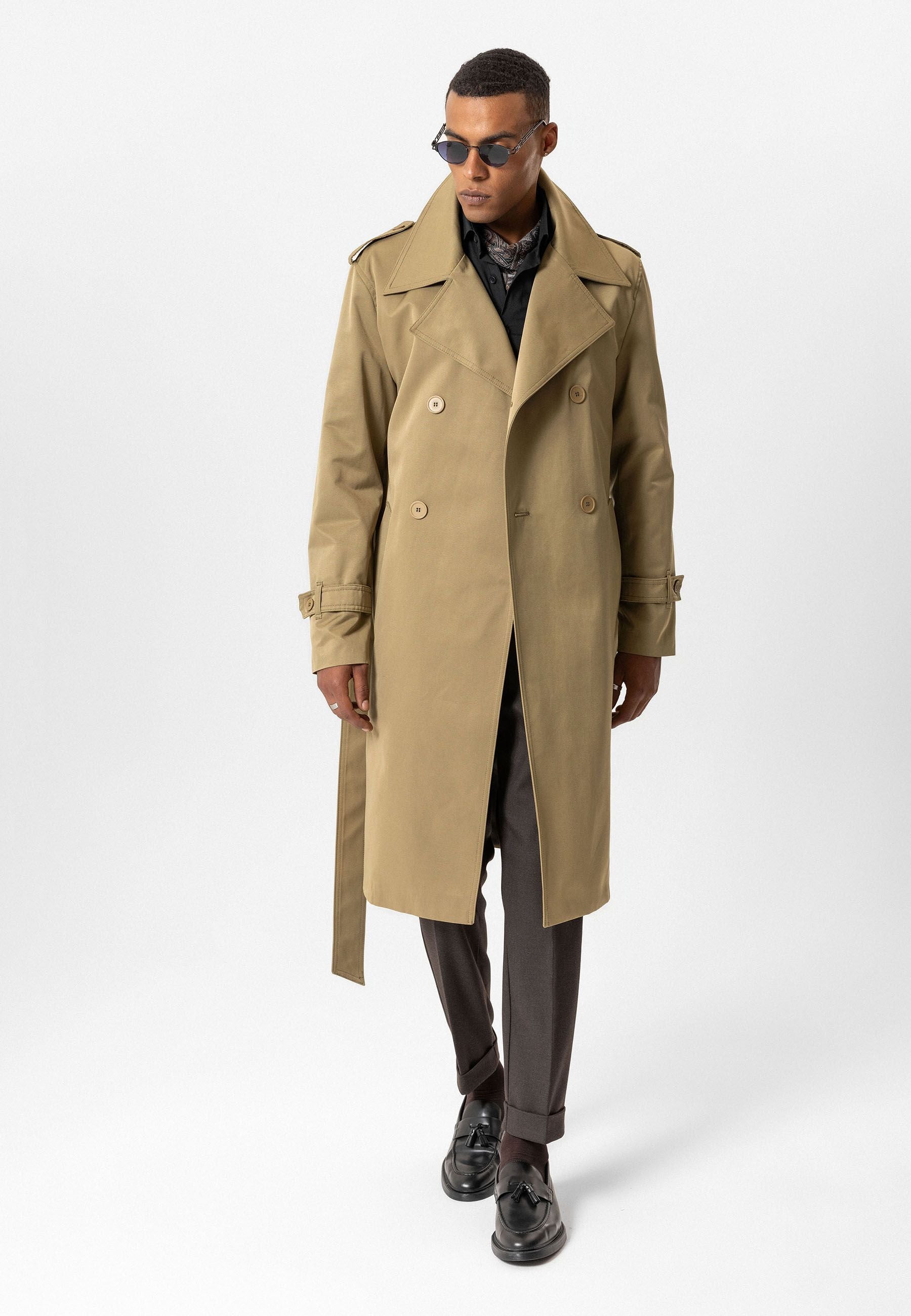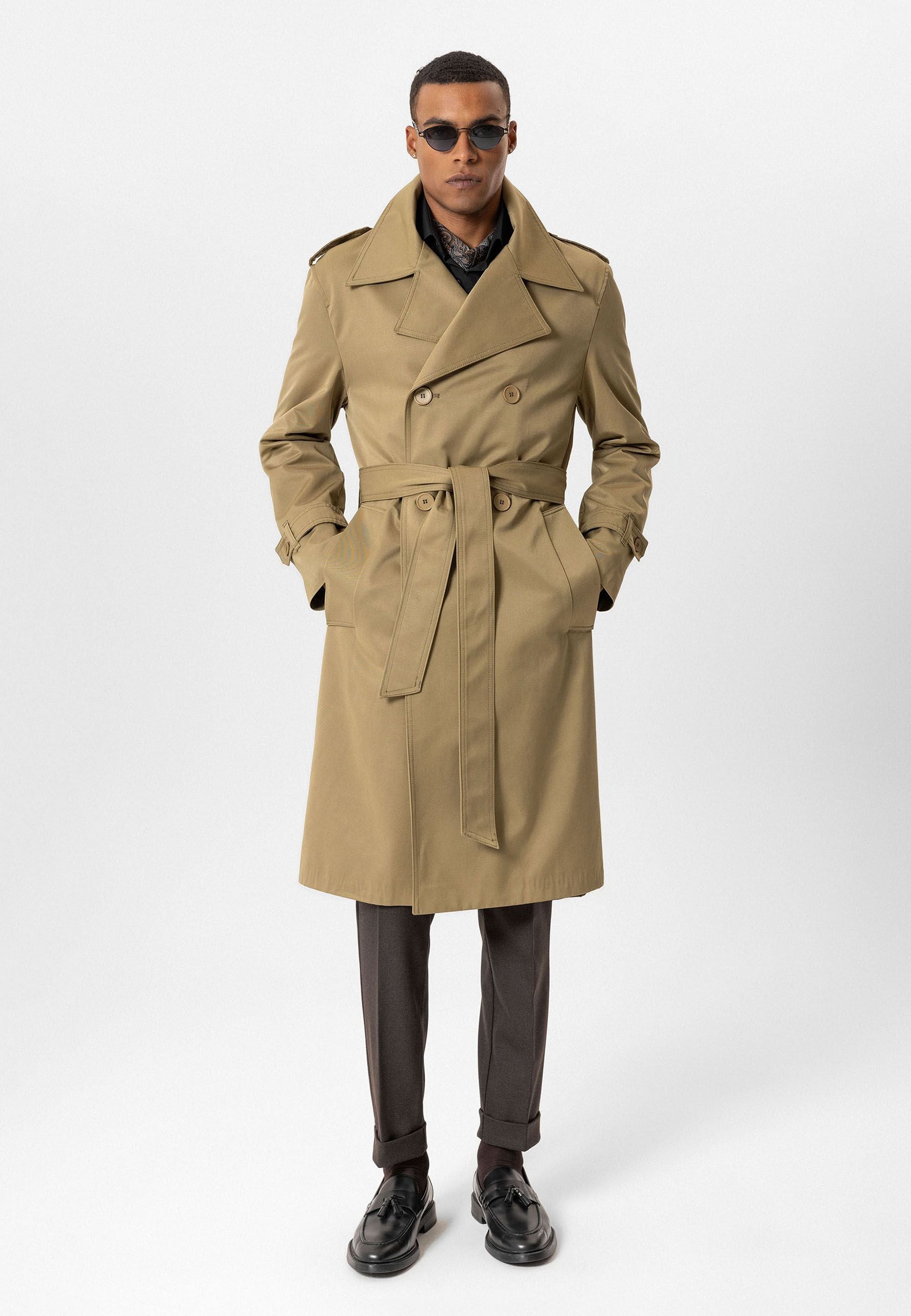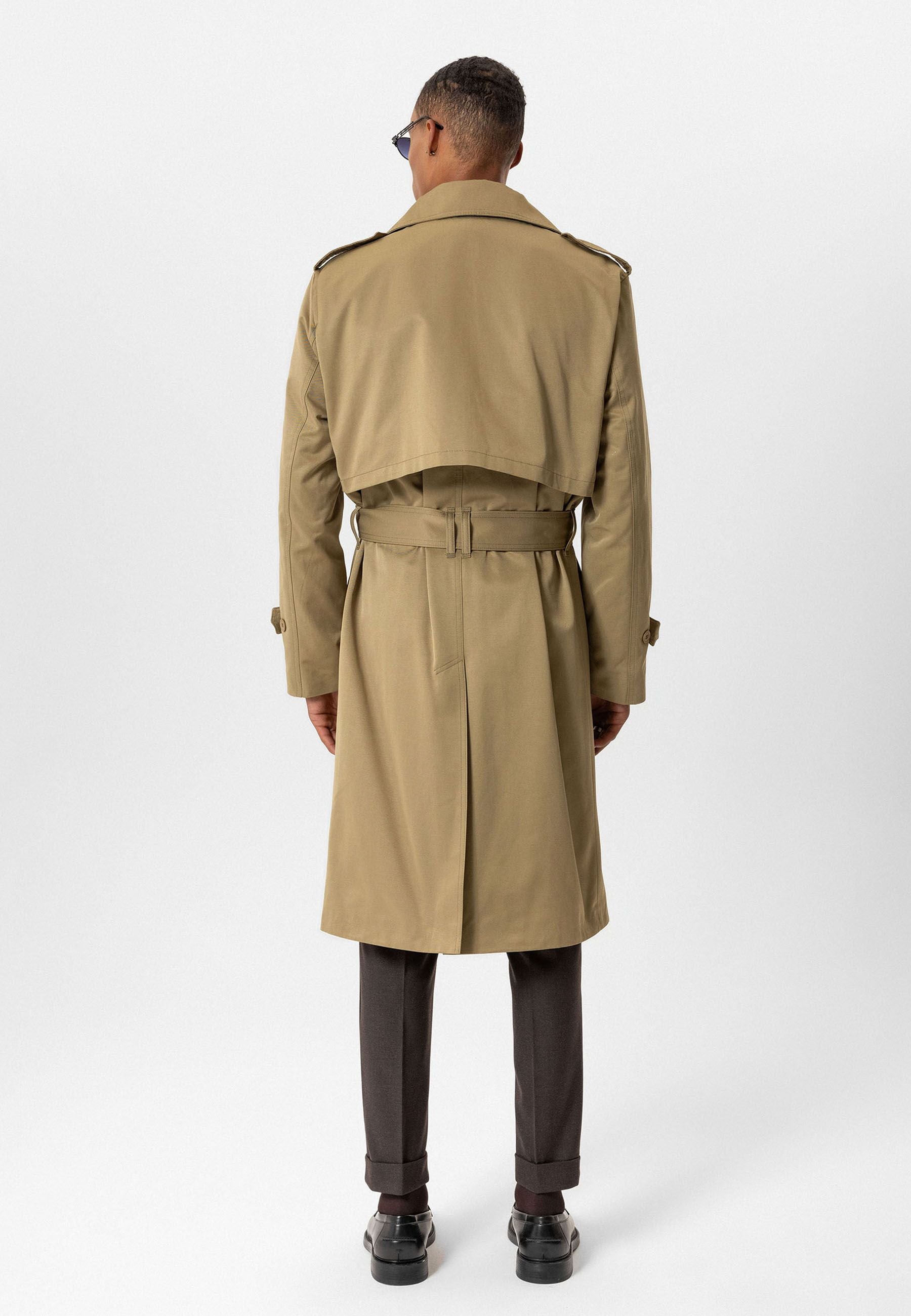 Relax Fit, Welt Pocket Trenchcoat. Material 75% Cotton 25% Polyester. Do not tumble dry, Dry clean only, do not wash, Do not iron, do not bleach. Our Model is 186 cm tall and is wearing size M