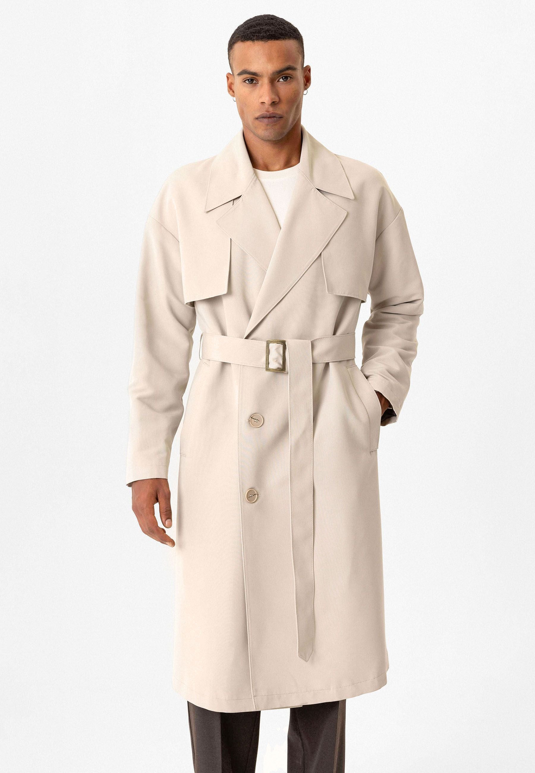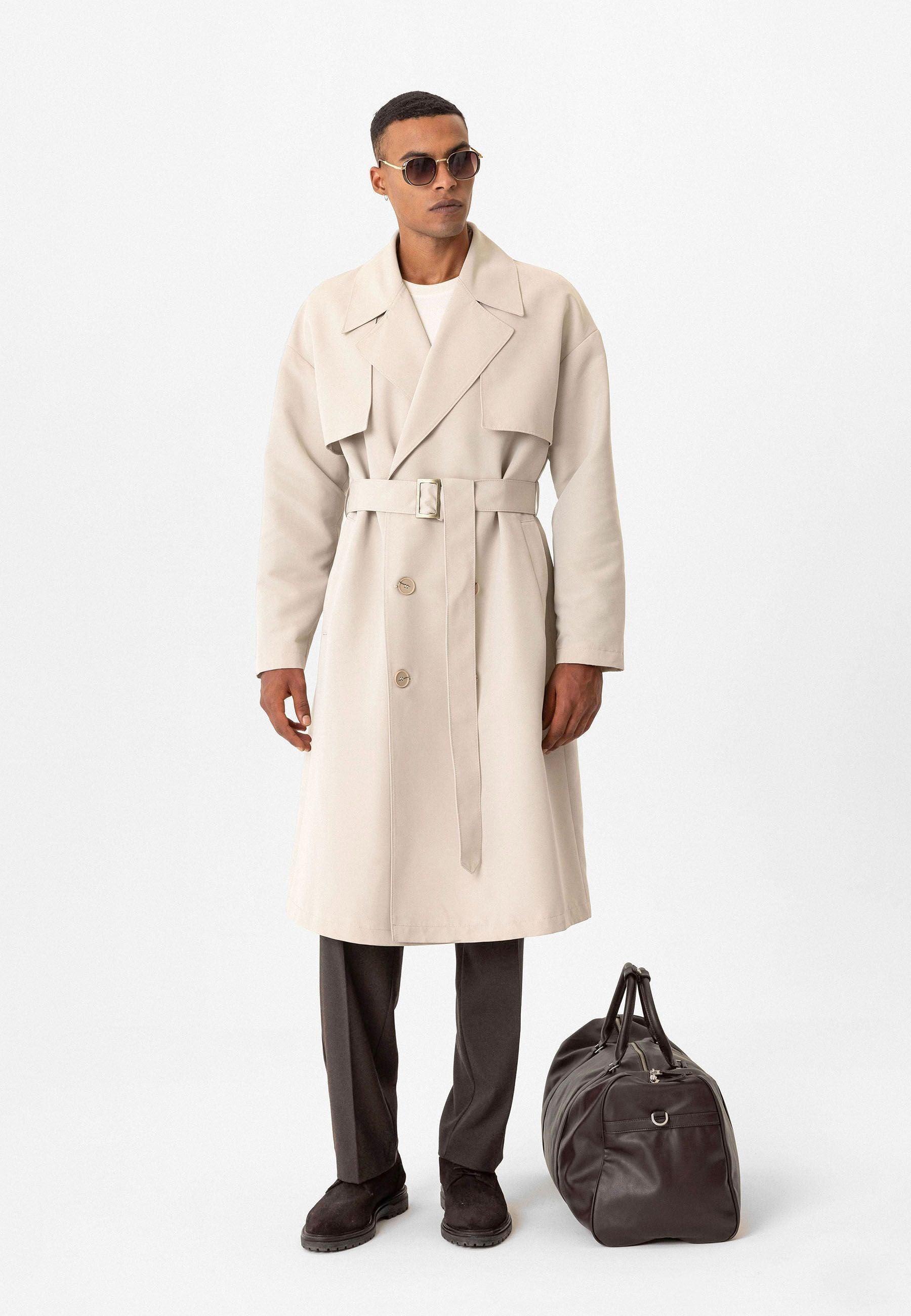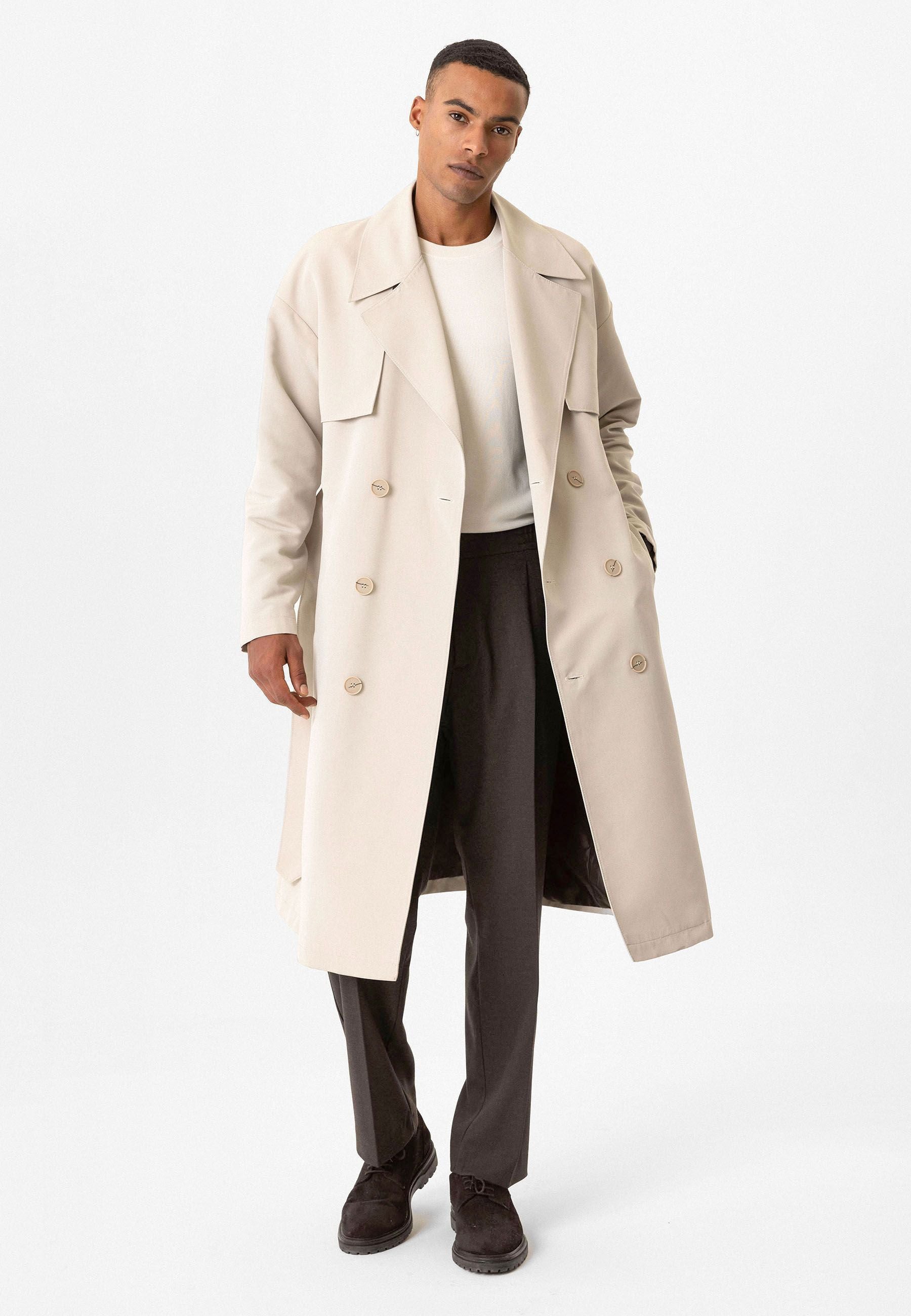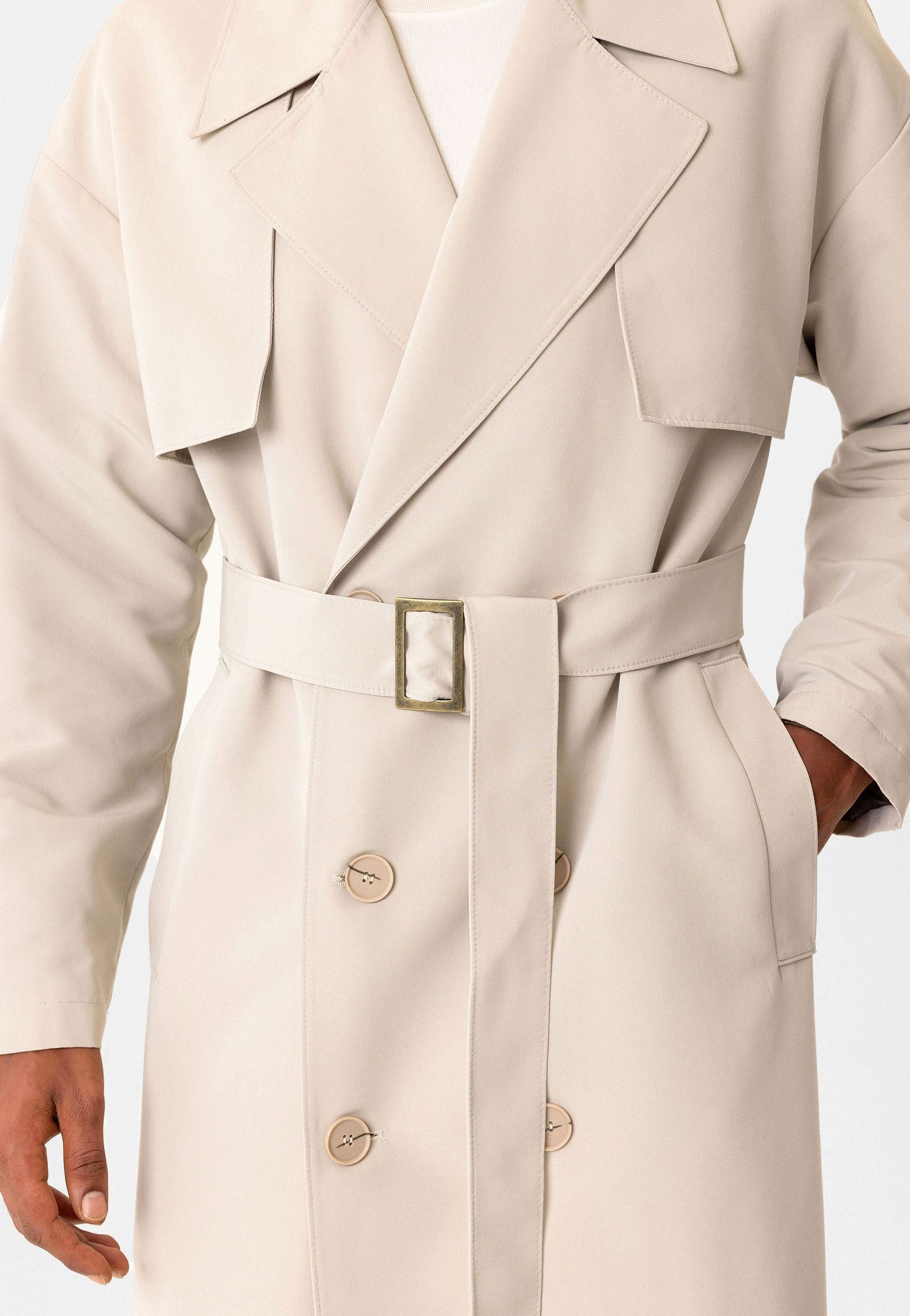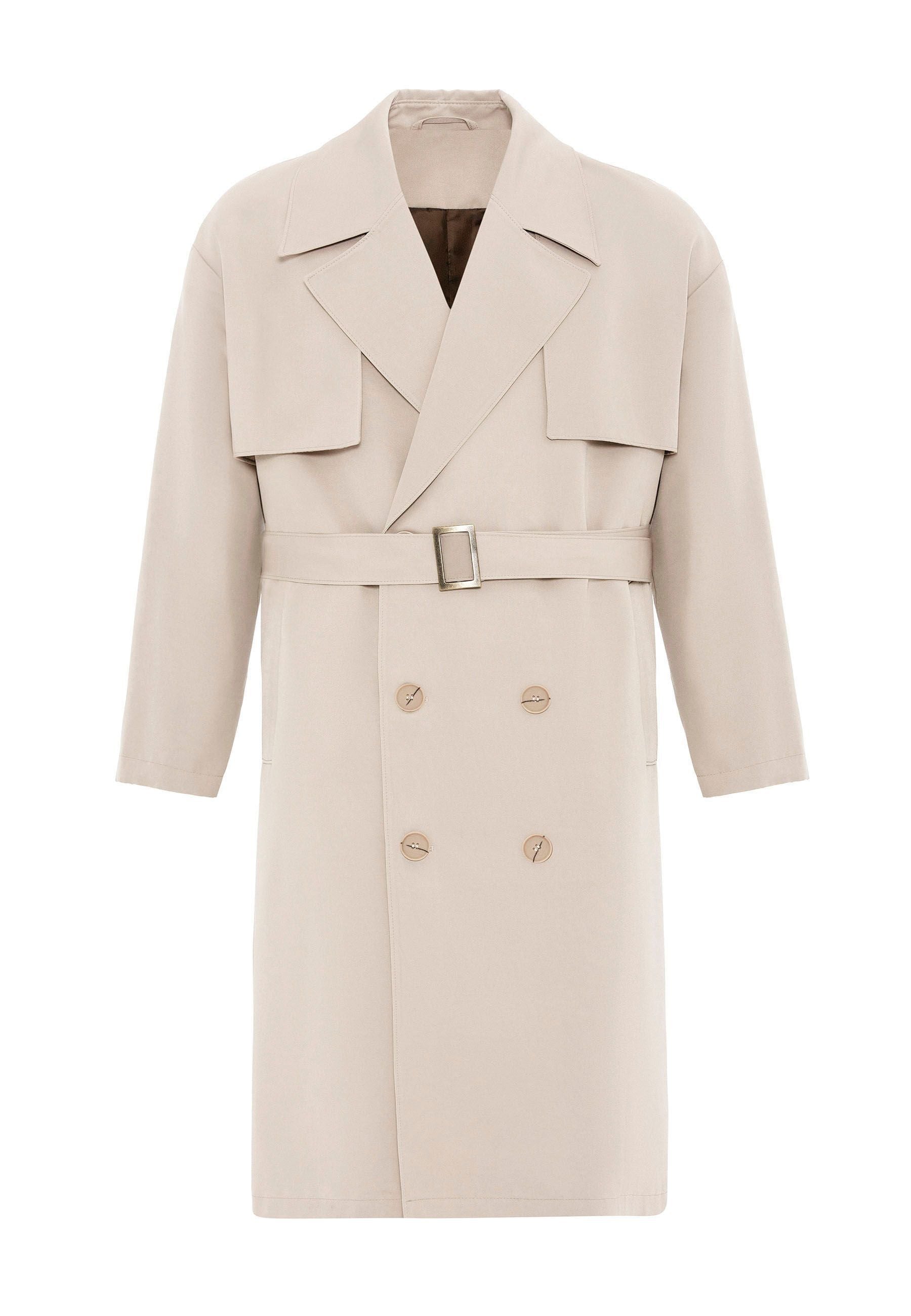 Oversize, Double-Breasted, Trench Coat. Material 100% Polyester. Do not tumble dry, Dry clean only, do not wash, Do not iron, do not bleach. Our Model is 186 cm tall and is wearing size M,