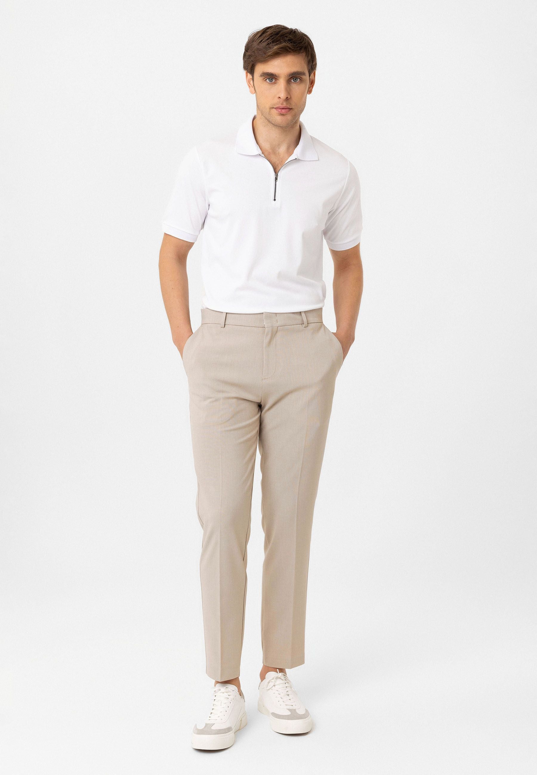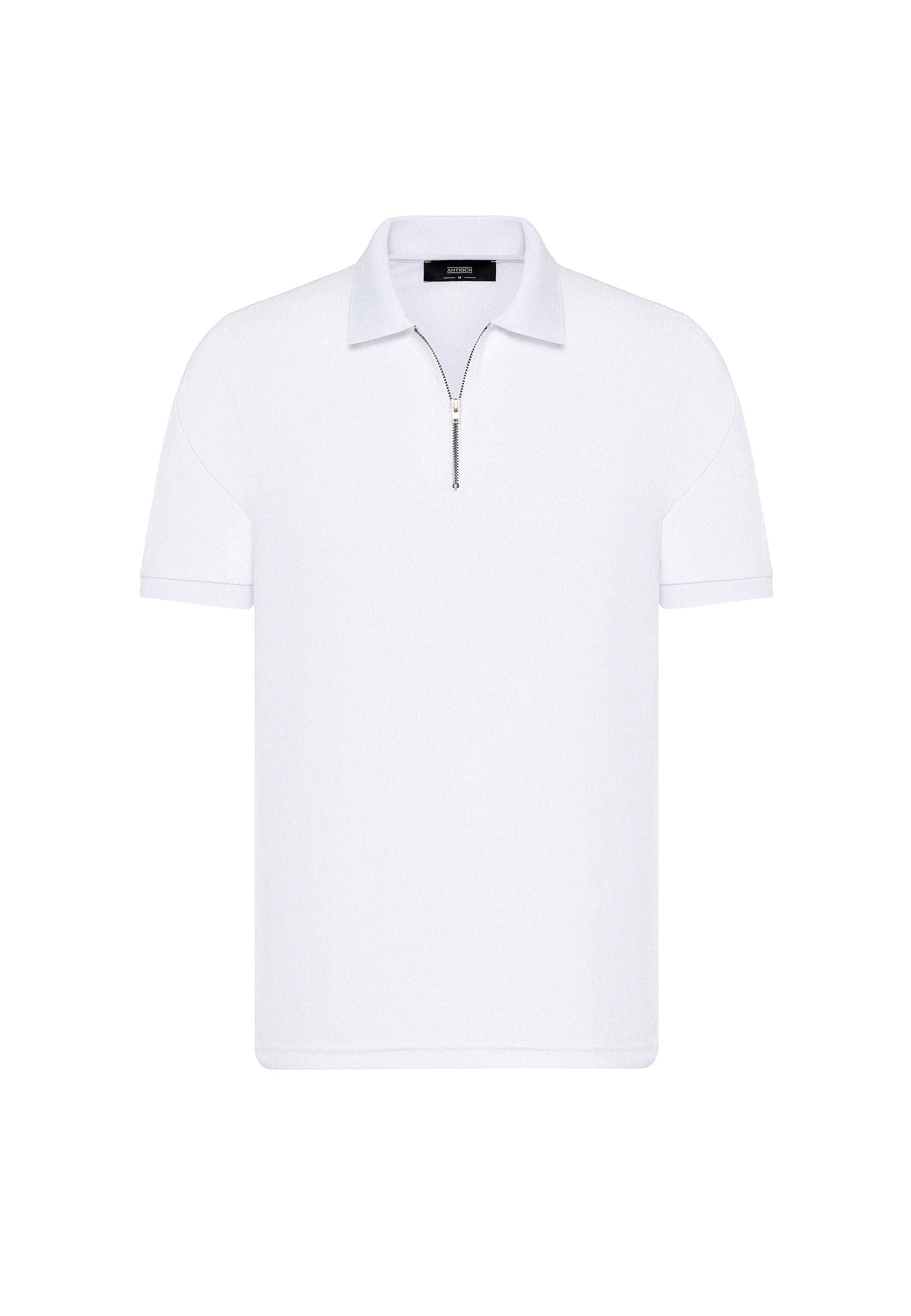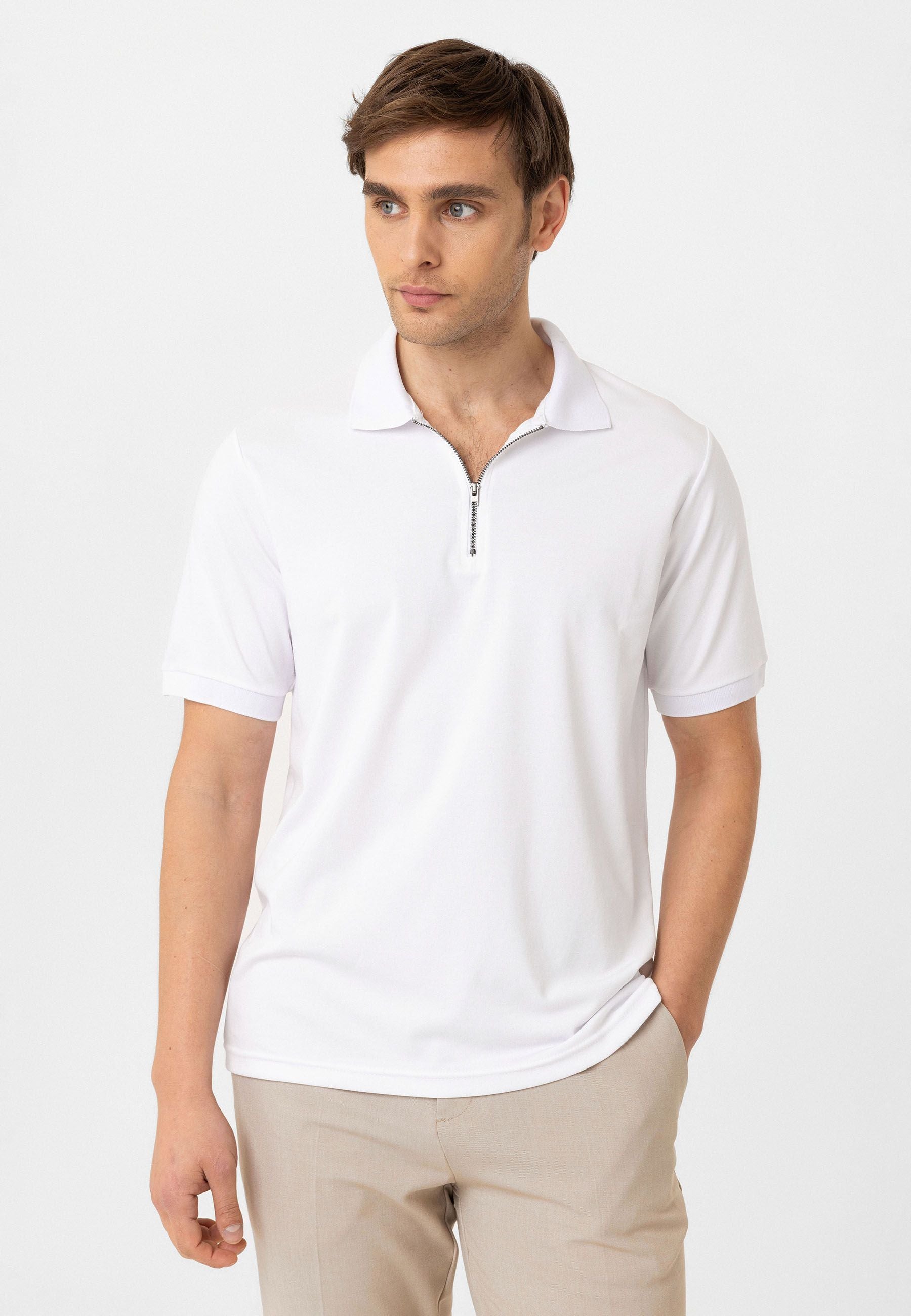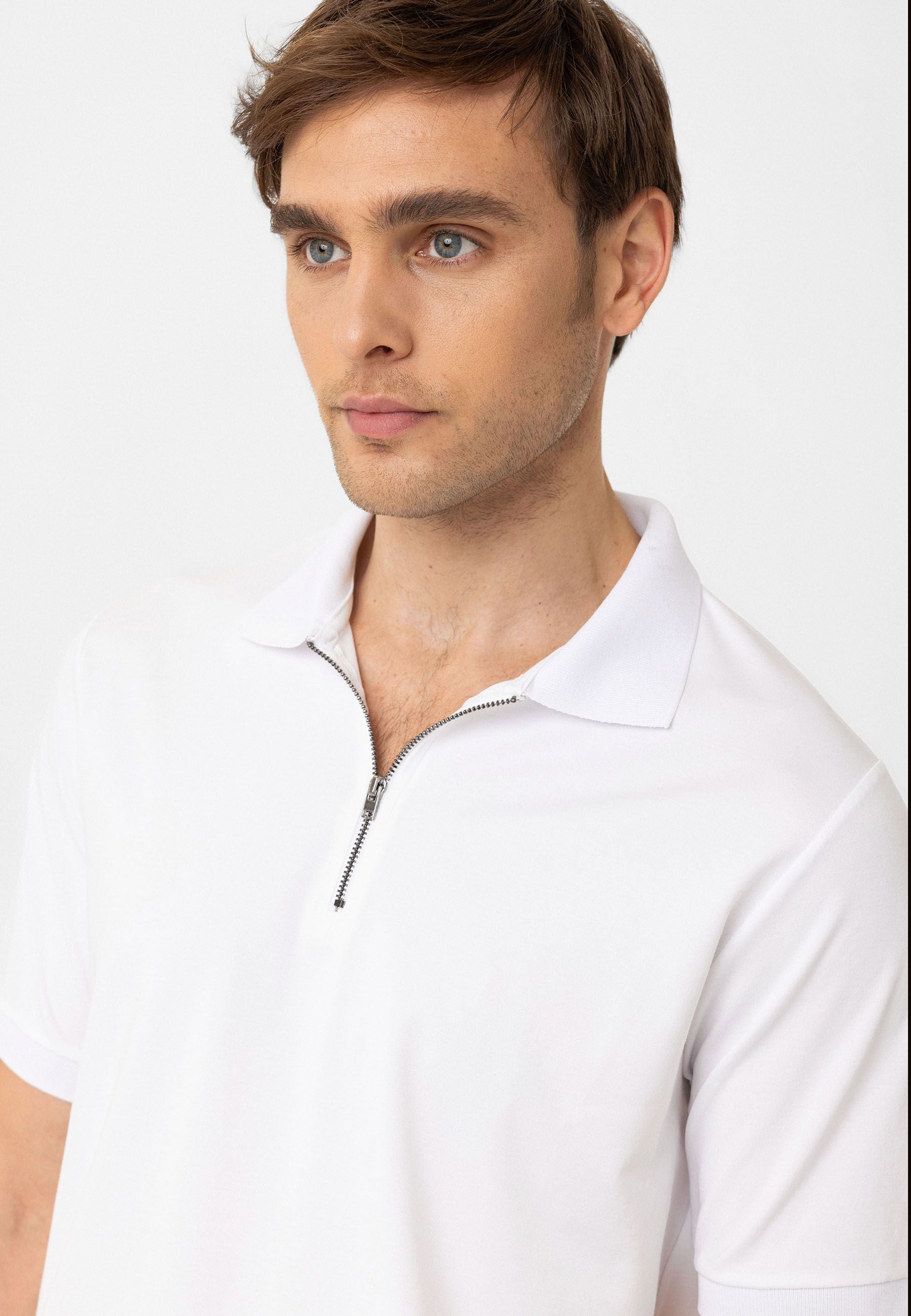 Regular Fit, Zipper Detail on Collar, Short Sleeve T-shirt. Material 58% Polyester 42% Cotton. Machine wash at 30°C. Our Model is 185 cm tall and is wearing size M